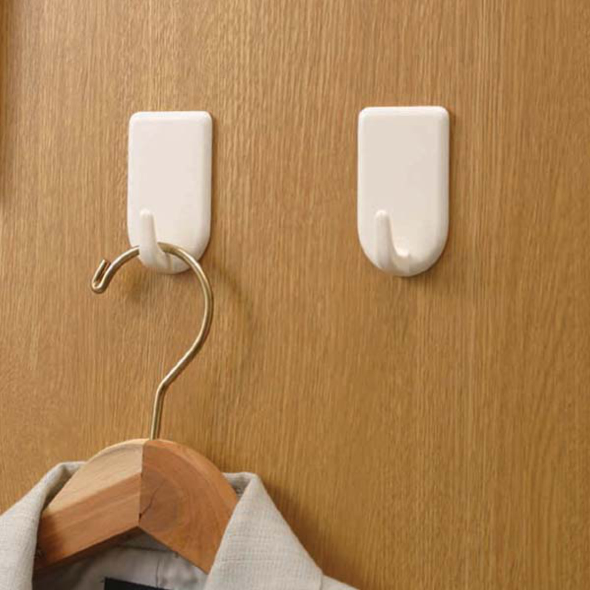 壁面に整理するのに最適、粘着テープフック●粘着テープで簡単に取り付けできるフックです。