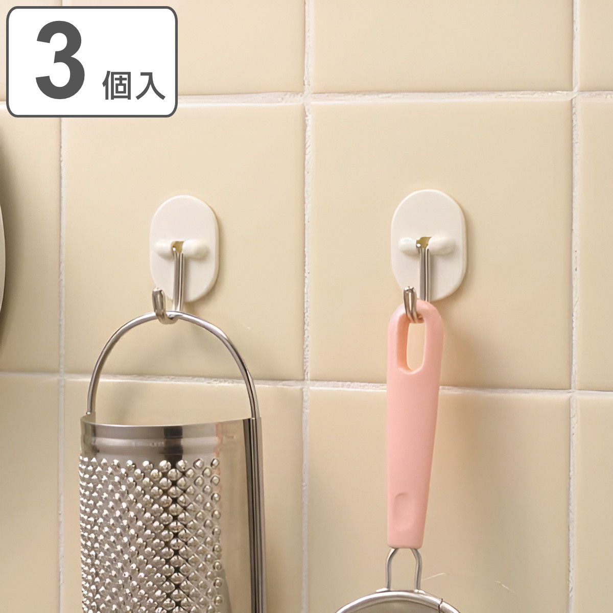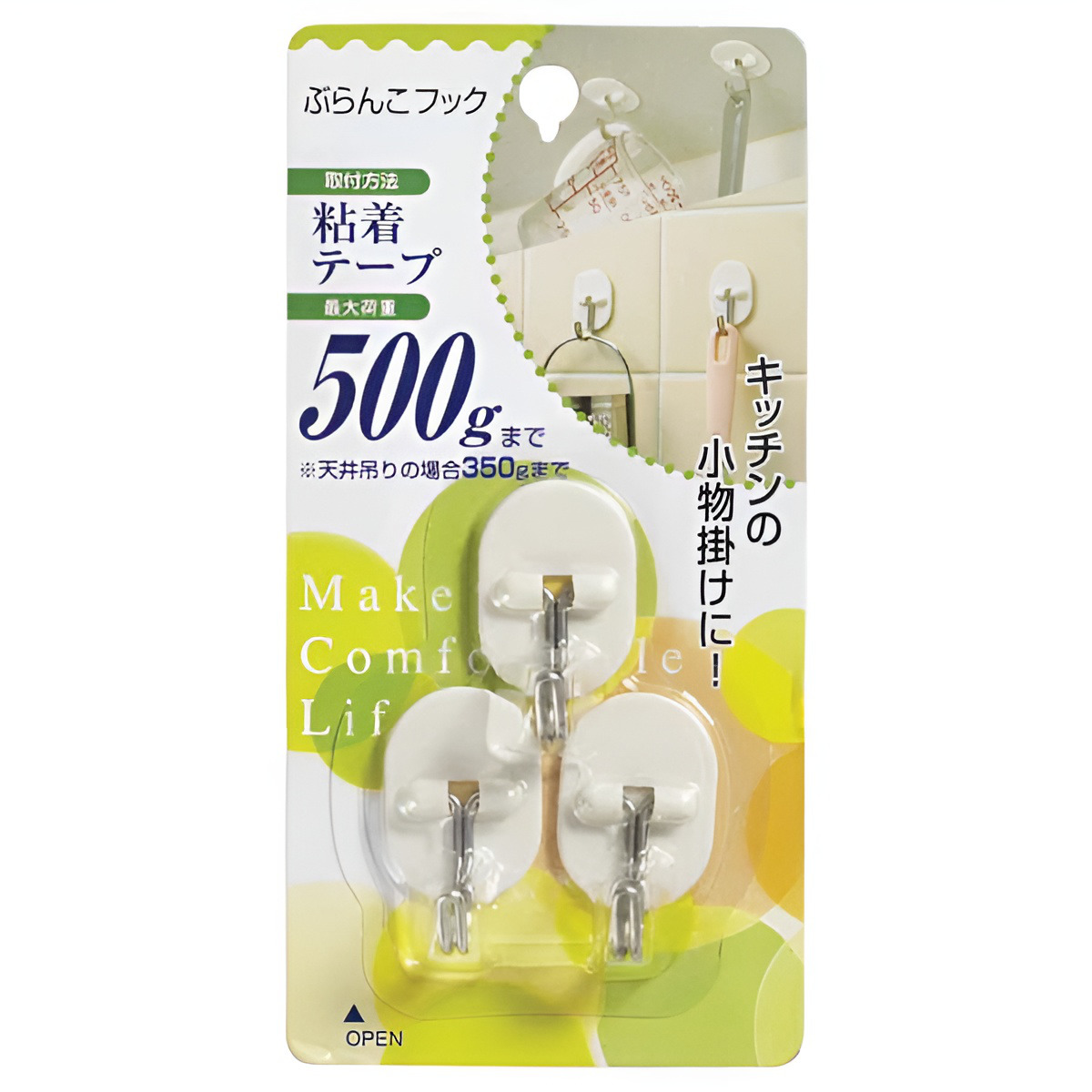 フック ぶらんこフック 3個入り 粘着テープ ( 粘着フック 耐荷重500g 粘着 収納 壁 天井 引っ掛け 壁掛け 吊り下げ 壁面収納 小物掛け )