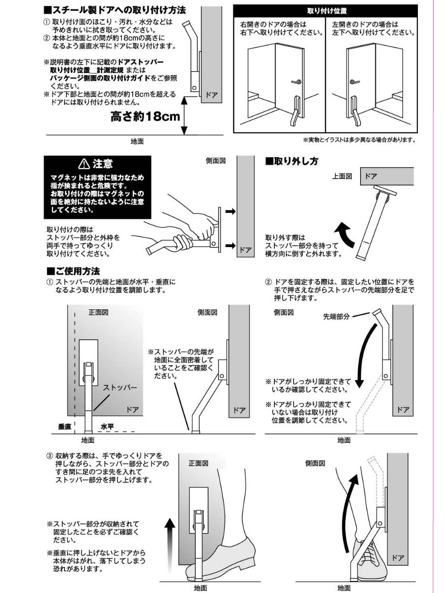※ドア下部と地面との間が約18cmを超えるドアには取り付けられません