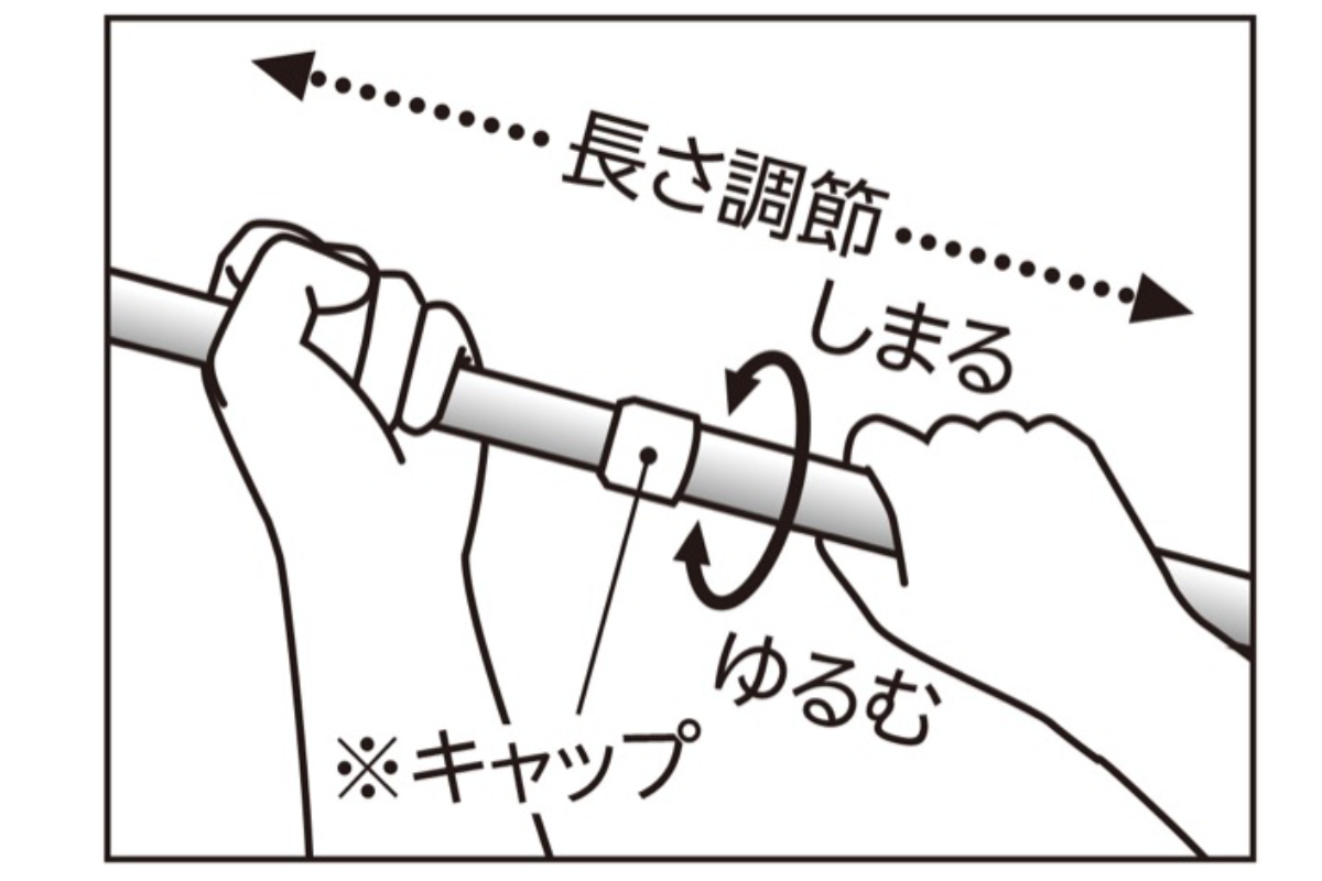 伸縮式で長さ調節可能柄は長さ調節することが可能です。キャップ部分をひねるだけの簡単操作です。