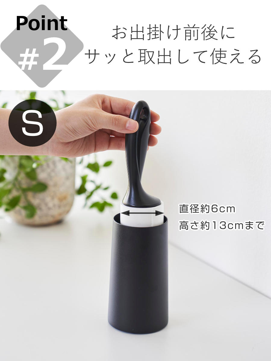| サイズ | 約 幅7.5×奥行7.5×高さ13.5(cm) 対応サイズ:約直径6×高さ13cmまでの一般的な衣類用粘着クリーナー |