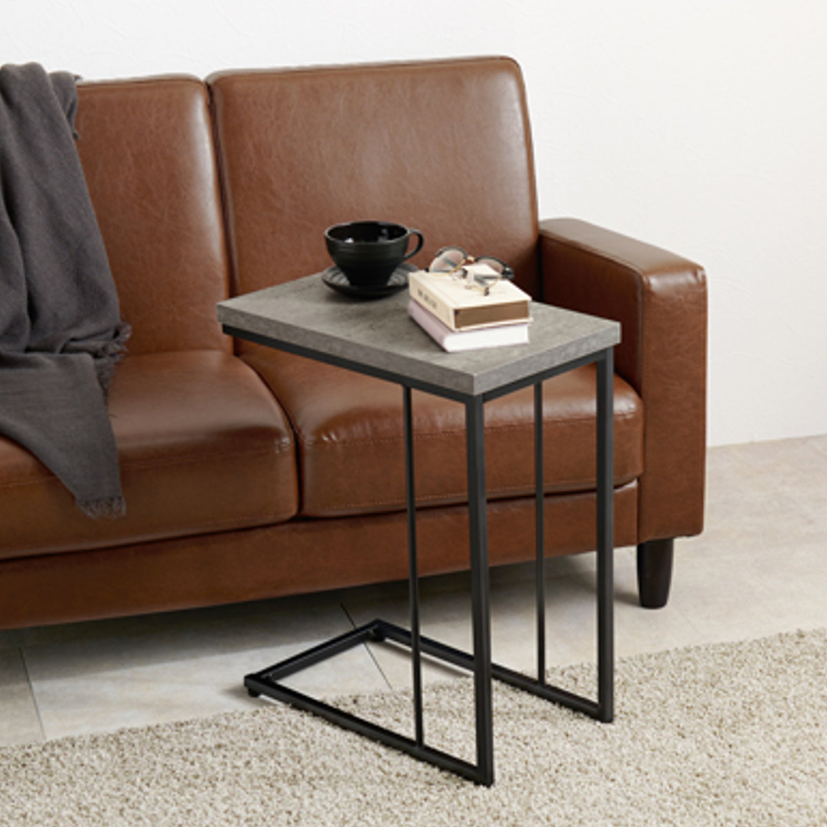 本や小物、飲み物などちょっとしたものを置くのに便利なサイドテーブルです。スリム設計で置きやすく、コの字型の脚なのでソファサイドやベッド横で使いやすい仕様です。コンクリート柄とスチールフレームを組み合わせた無駄のないシンプルなデザインでお部屋に溶け込みます。