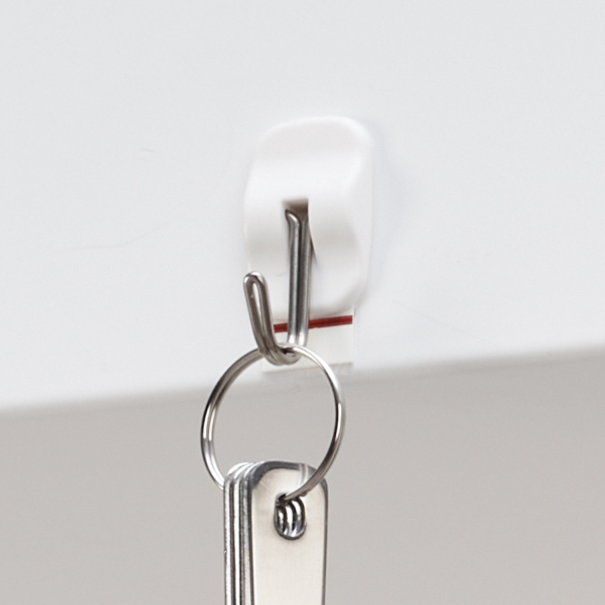 しっかり貼れてキレイにはがせる 粘着ハングフック3個入りプリント合板・タイル・金属塗装面などに粘着テープで取り付けるハングフック3個入りです。耐荷重は垂直面500g、水平面300gです。しっかり貼れてはがし跡が残らない粘着テープを使用しています。