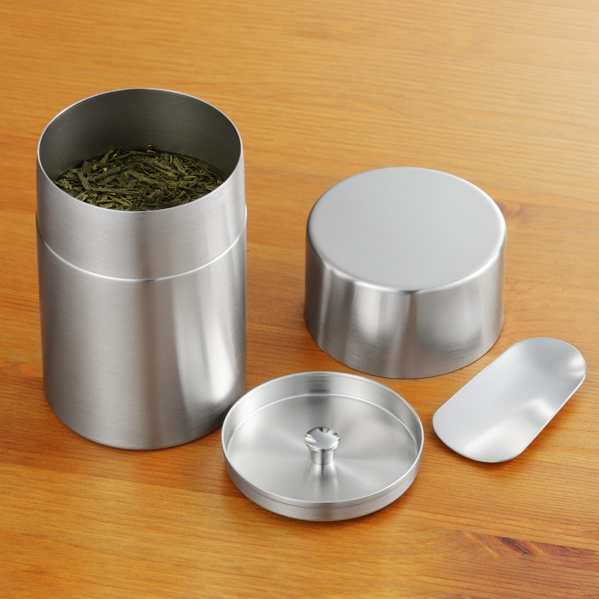 お手入れがしやすく耐久性に優れたオールステンレス製です。遮光性が高く、におい移りや湿気にも強く、茶葉の香りや味を長く保ちます。