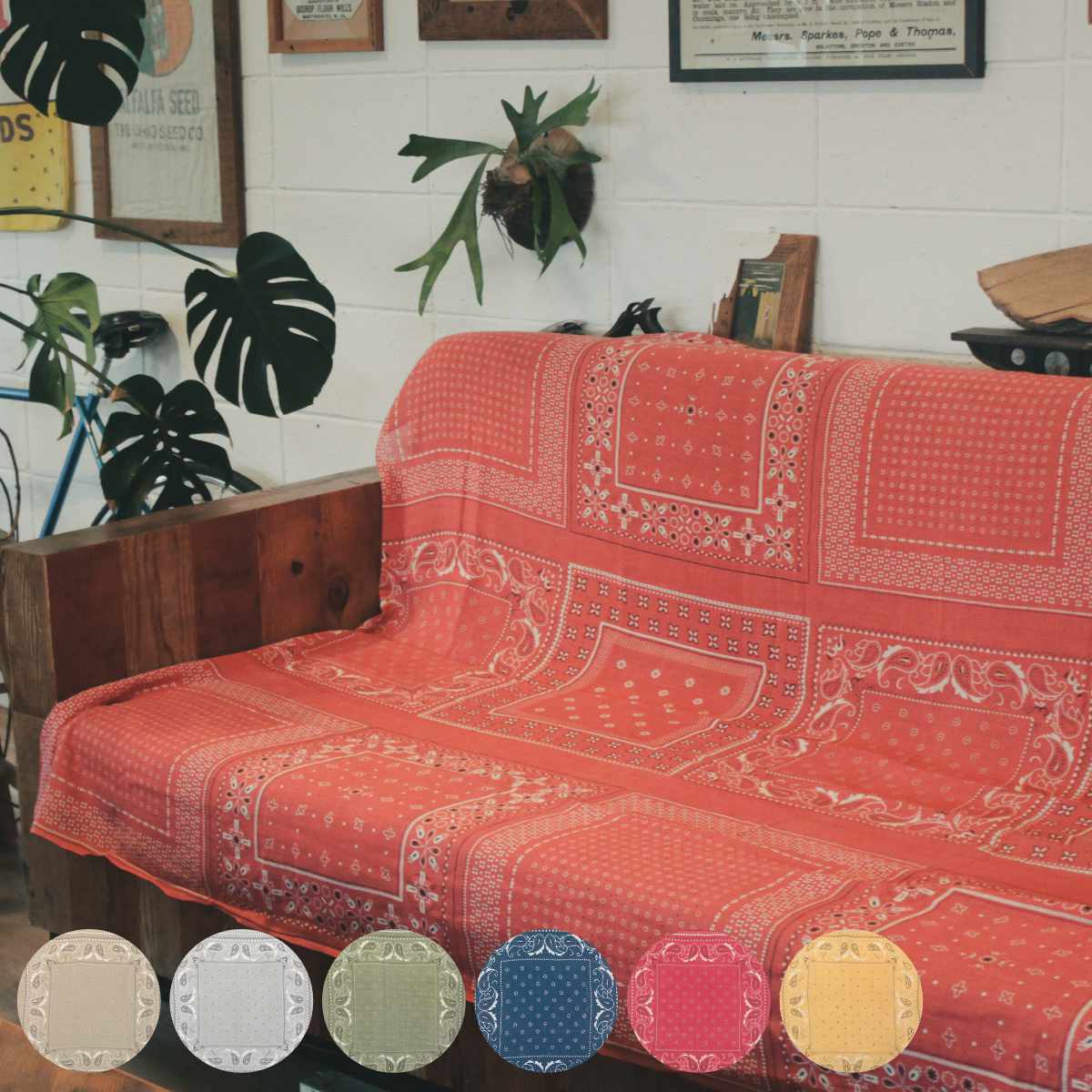 ビンテージのバンダナを敷き詰めたようなマルチカバー●150×225cmサイズのマルチカバーです。