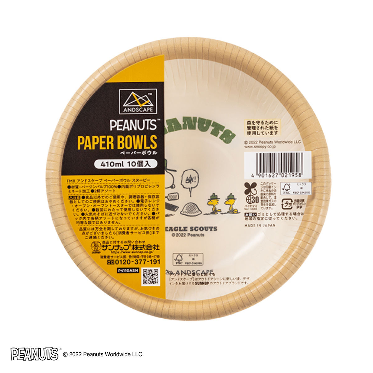 紙皿 410ml FMX ANDSCAPE ペーパーボウル スヌーピー 10枚入り ※パック内に2柄が入ります ( SNOOPY 使い捨て ボウル 簡易食器 使い捨て容器 紙容器 日本製 )