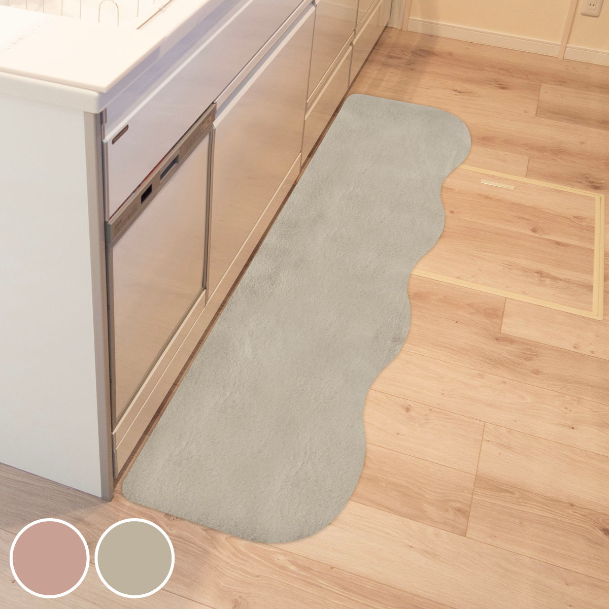 まるでうさぎを撫でているような、フェイクファーのなめらかな肌触りが心地良いキッチンマットです。やわらかなカーブとくすんだカラーが大人かわいい空間を演出してくれます。キッチンはもちろん、ベッドサイドや玄関などにもピッタリです。