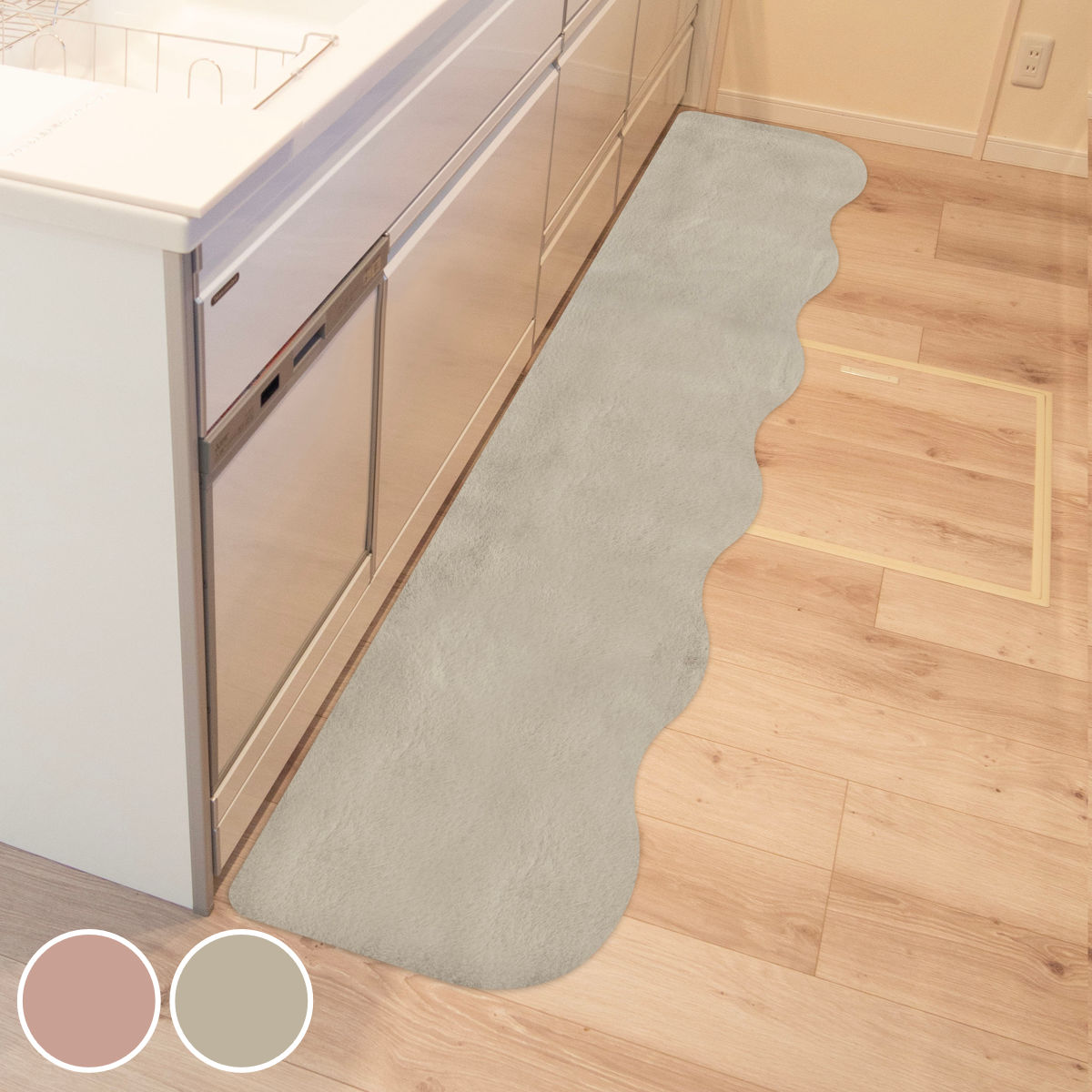 まるでうさぎを撫でているような、フェイクファーのなめらかな肌触りが心地良いキッチンマットです。やわらかなカーブとくすんだカラーが大人かわいい空間を演出してくれます。キッチンはもちろん、ベッドサイドや玄関などにもピッタリです。