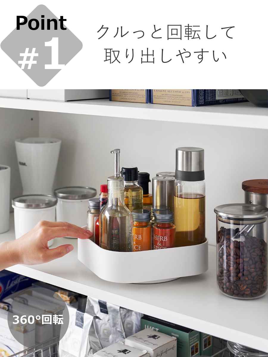調味料ラック 小物収納 滑り止め付き ラック 回転ラック 4903208021999 yamazaki towerシリーズ 山実 YAMAZAKI 山崎 やまじつ 白 黒 モノトーン 無地 シンプル スタイリッシュ ホワイト ブラック パントリー 洗面所 ランドリー 調味料 化粧品 スキンケアグッズ 卓上 スパイス 収納 棚 おしゃれ オシャレ お洒落 360度回転 360度 シンク下 すべり止め 滑り止め 塩 醤油 ソース マスタード コンロサイド コンロ周り収納 コンロ奥収納 マルチラック マルチスタンド デッドスペース 小物入れ 整理 整頓 有効活用 コスメ収納 小物置き LH11728 LH8267