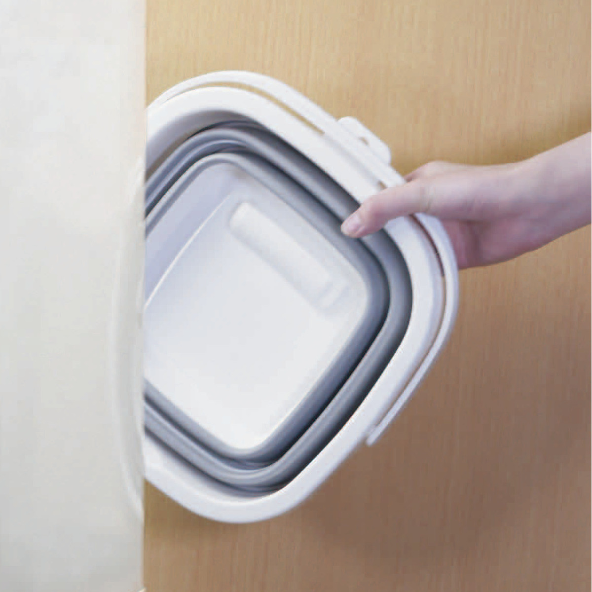 折りたたんで便利に使えるバスケット様々なシーンでマルチに活躍する折りたたみバスケットです。掃除や洗濯、アウトドアレジャーなど多用途にお使いいただけます。つけ置き洗いや上履き、スニーカー洗いにもオススメ。かごとしても便利にお使いいただけます。