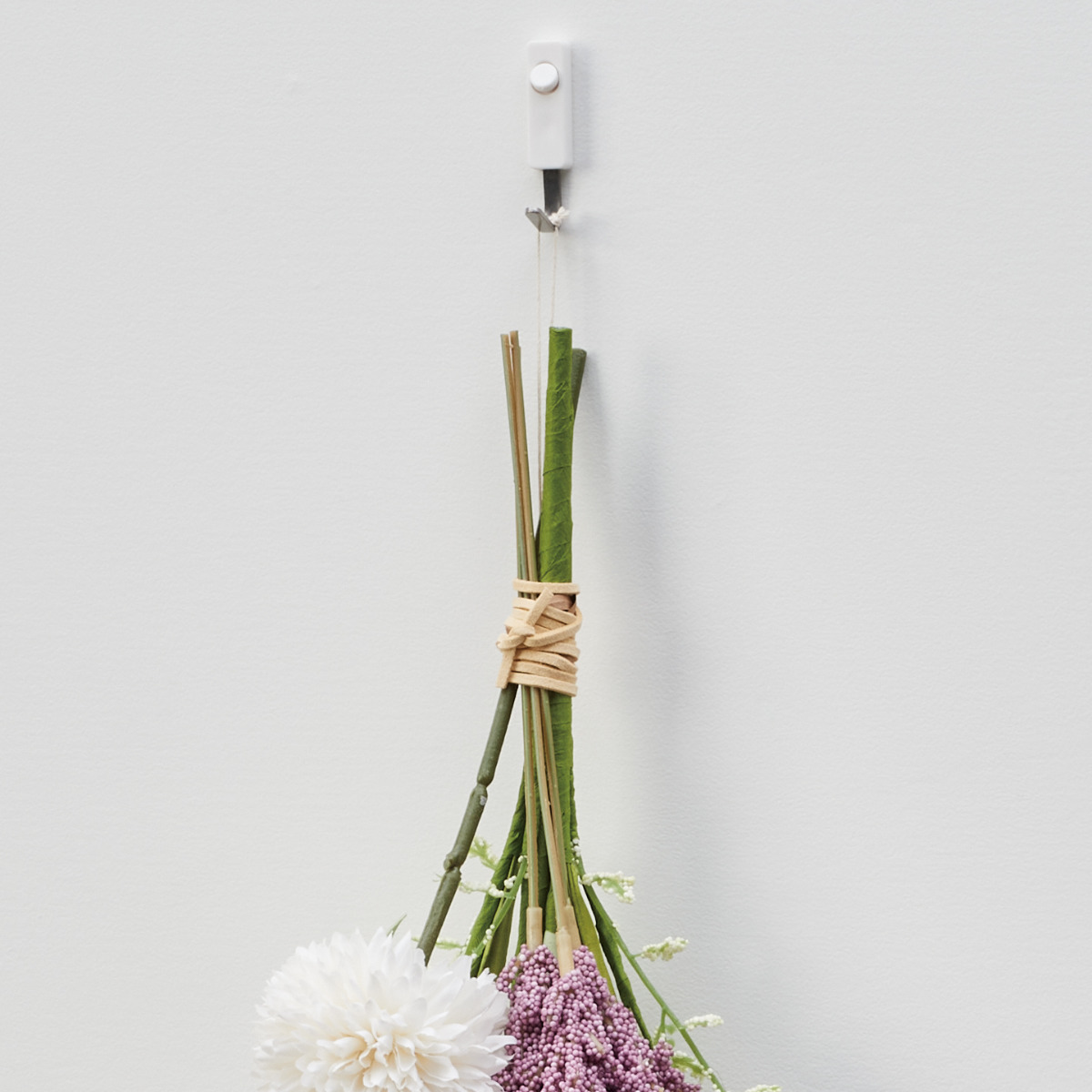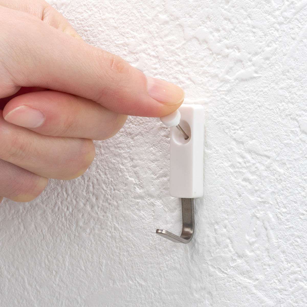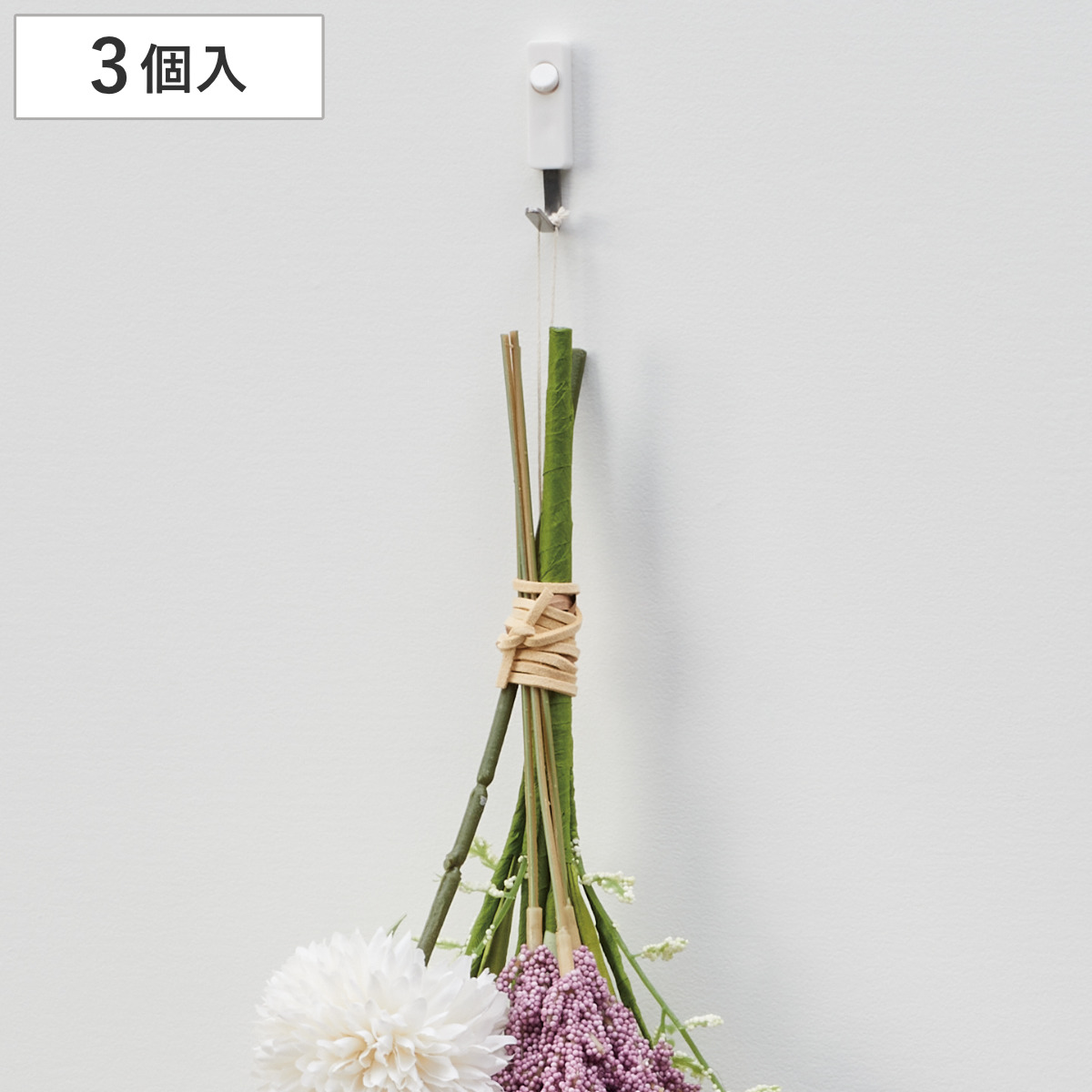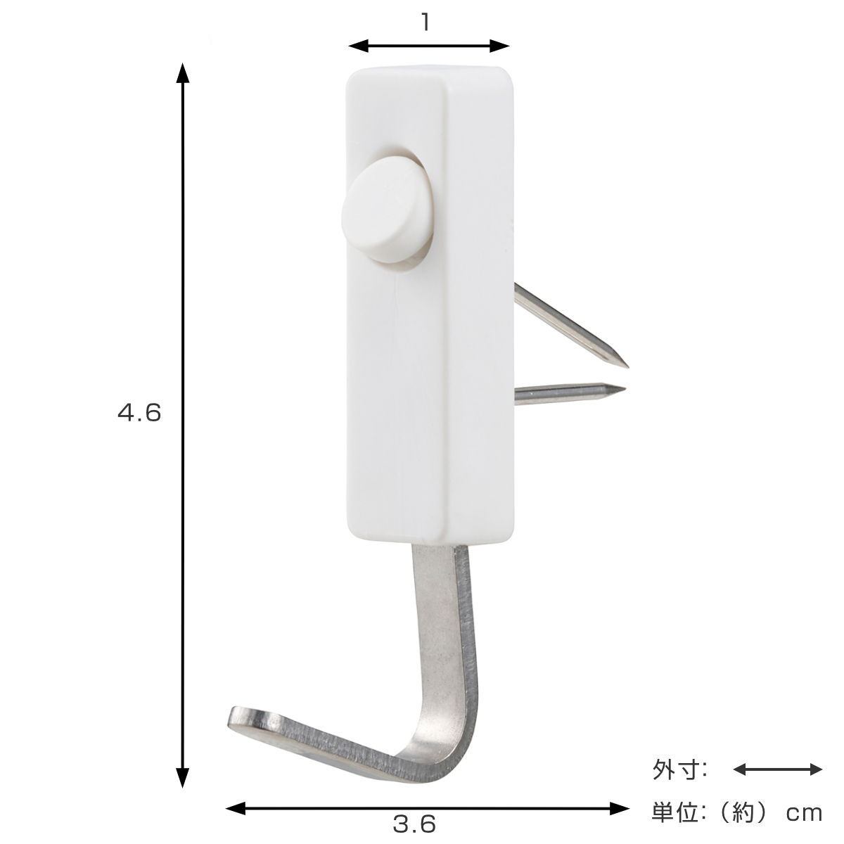 石こうボードの壁に固定、ダブルピンフック3個入り最大保持荷重が約2kgの、ダブルピンフック3個入りです。2本のピンでしっかり固定します。