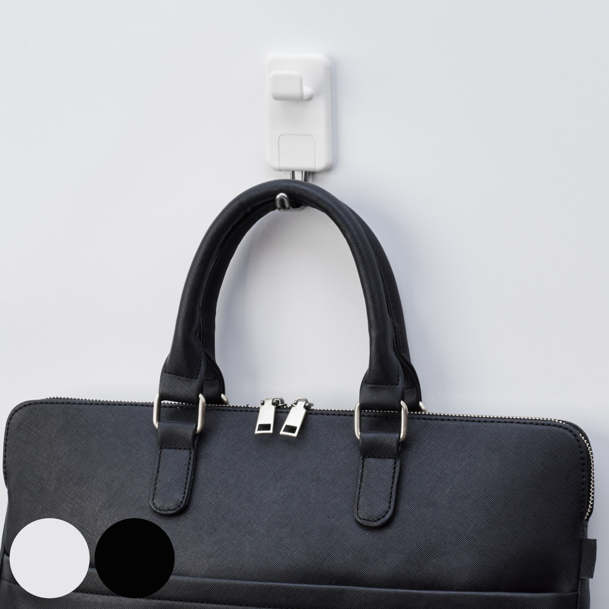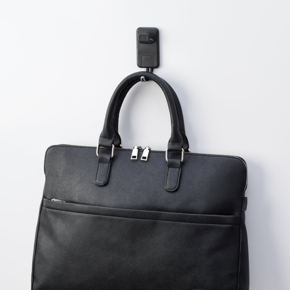 かばんも掛けやすい、強力マグネットフック最大保持荷重が約6kgの、強力マグネットフックです。かばんも掛けやすい形状で、裏面にはキズ防止シートが付いています。