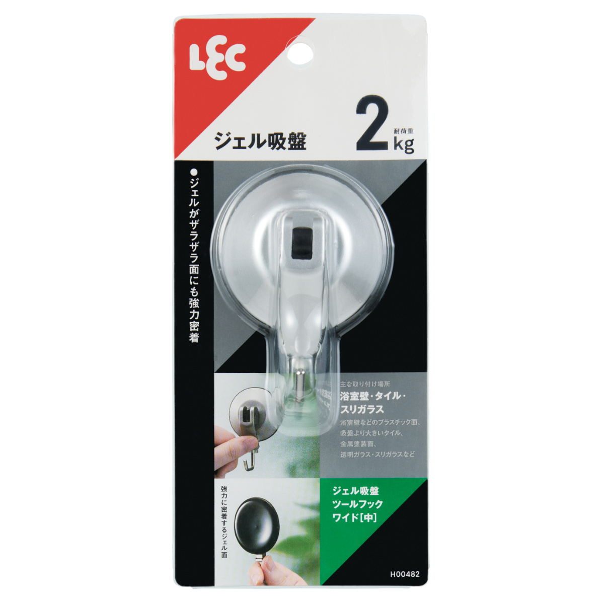 ザラザラ面にも密着、ジェル吸盤ツールフック●最大保持荷重が約2kgの、ジェル吸盤ツールフックです。