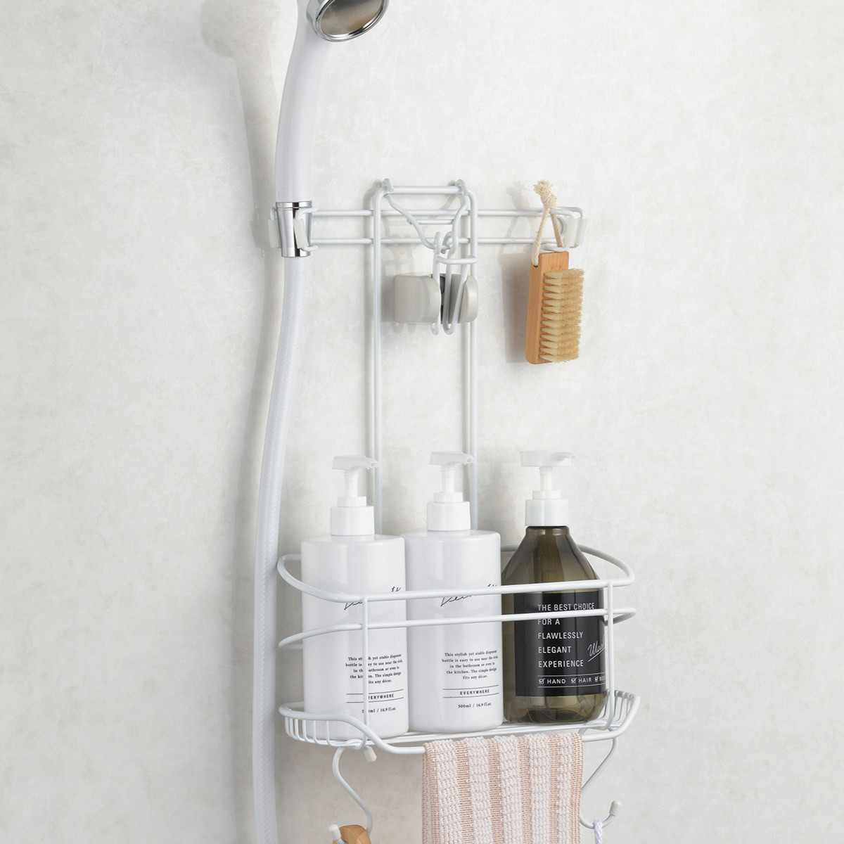 ●シャワーフックに掛けるので邪魔にならず手元にまとめて収納することができます。