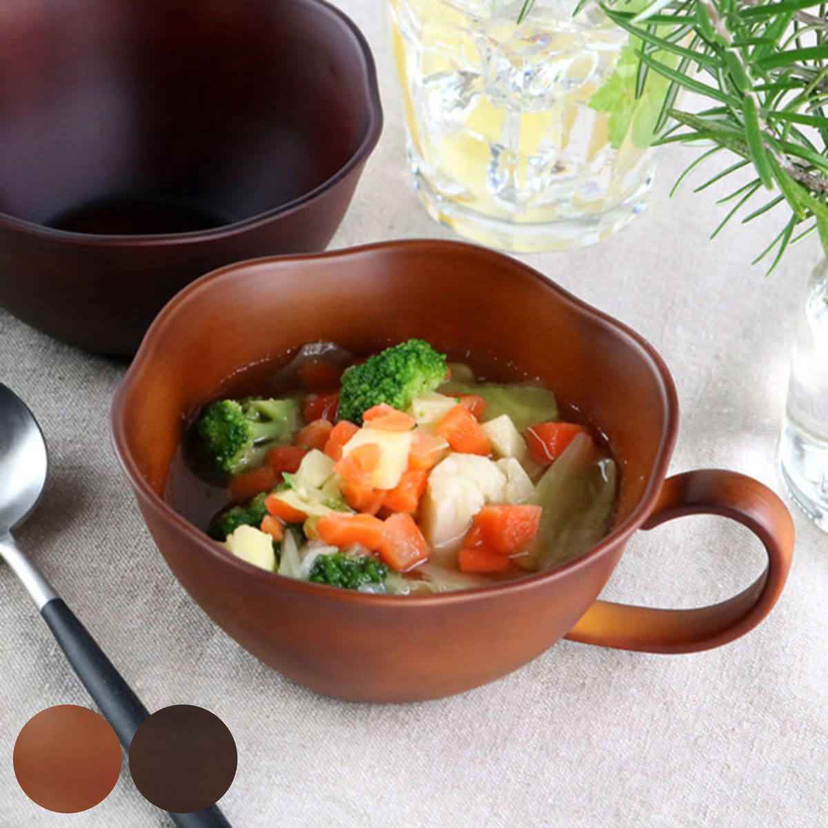軽い 割れにくい 木製風 花 鉢 中鉢 スープ 味噌汁 スープマグ 軽量 花の形 持ち手 取っ手 輪花 とんすい 取り皿 ボウル マグカップ カフェオレボウル うつわ 器 容器 和食器 洋食器 カフェ食器 樹脂製 普段使い 日常 使いやすい 落としても割れない 木目 木っぽい おすすめ 人気 アウトドア 野外 外 キャンプ ピクニック うちピク グランピング ベランピング バーベキュー BBQ 子供 子ども 用 介護 食洗機 電子レンジ 対応 OK 使える 可能 チンできる ブラウン 茶色 カフェ風 LH1616