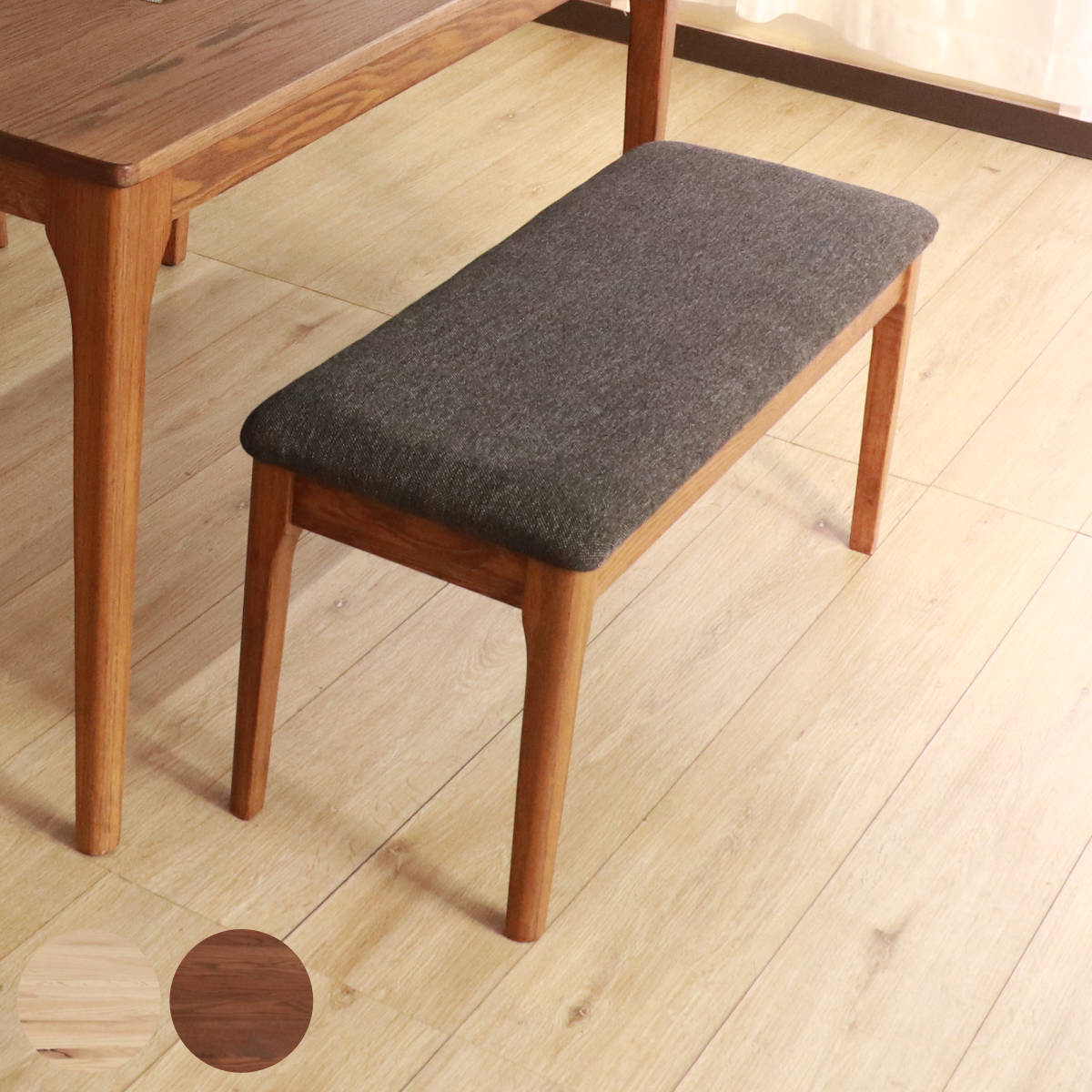 | 材質 | レッドオーク無垢材 クッション:ウレタン、ポリエステル 【塗装】ナチュラル:水性アクリル塗装 ブラウン:天板/天然オイル仕上げ、その他/水性アクリル塗装 |
