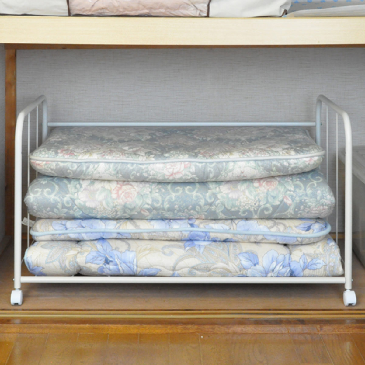 アジャスター、キャスターどちらでも使える布団収納ワゴン