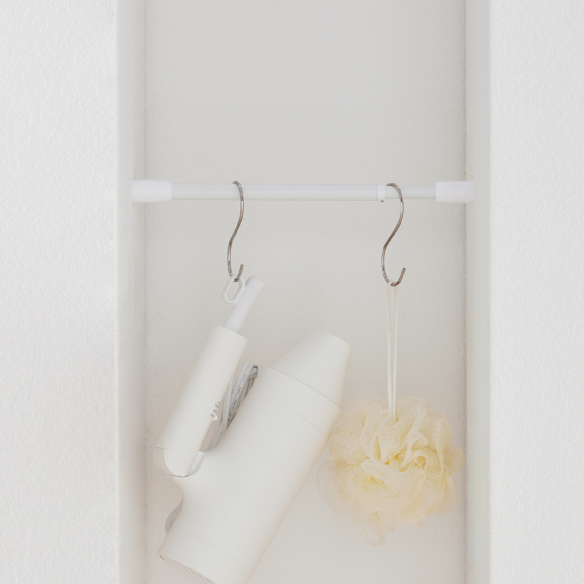 暮らしにフィットするシンプルなつっぱり棒 25〜30cm様々なテイストに馴染むシンプルなつっぱり棒です。マットな質感のホワイトなので落ち着いた雰囲気になっています。お家の中のデットスペースを利用して収納力をアップできるので、クローゼットやキッチン、ランドリーなど様々な場所で大活躍してくれます。