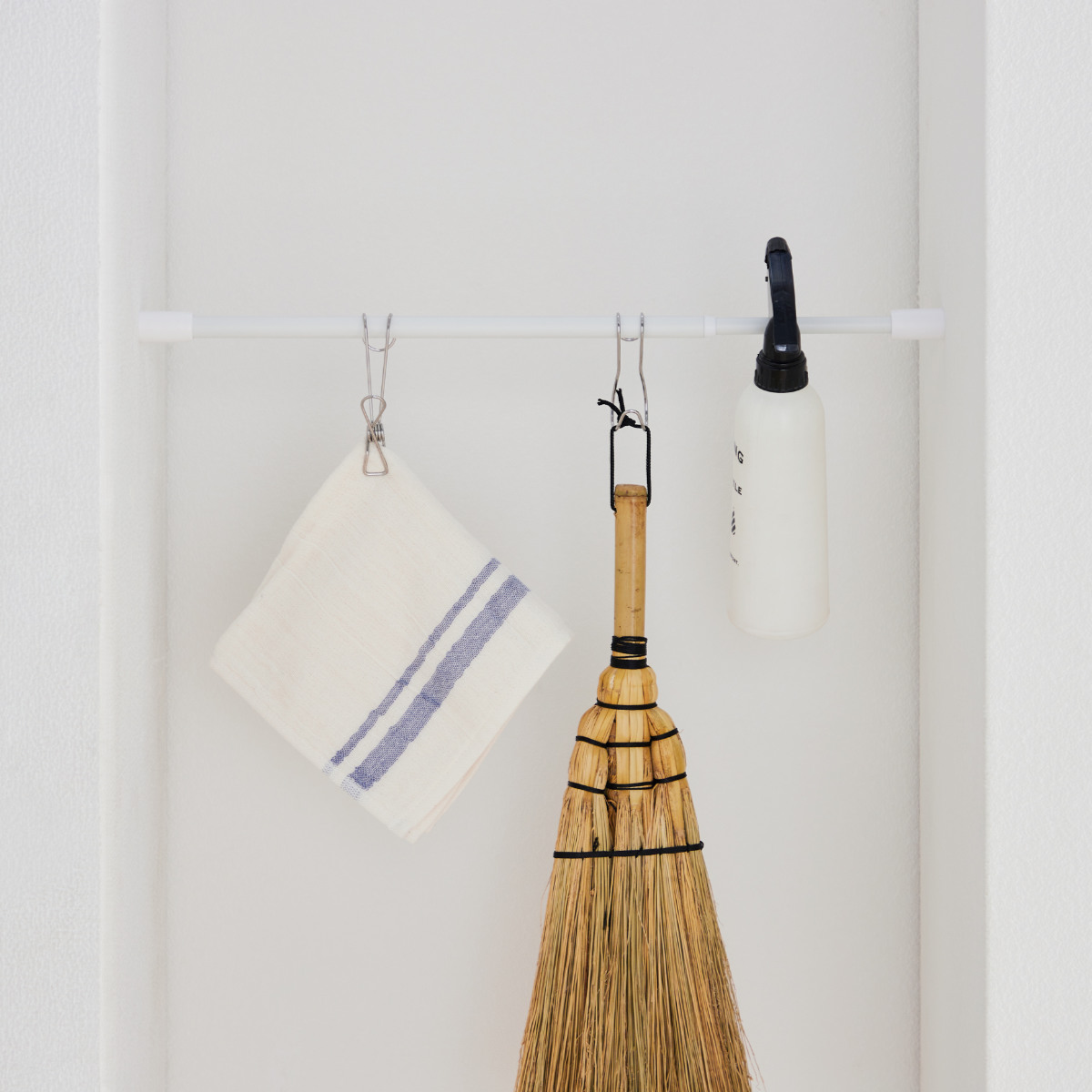 バネ式つっぱり棒バネ式で簡単に取り付け・取り外しができ、壁に穴を開けずに収納やレールとして使用できます。