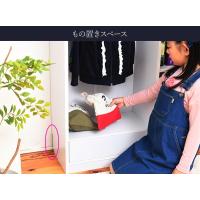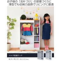 | お気に入りの雑貨を飾る こだわりのアイテムを「見せる収納」することでオリジナリティを出せます。角は丸く、お子様にもやさしいです。 | お子様に合う背丈の洋服掛け ハンガーラックはお子様でも手が届き、洋服が掛けやすいです。ポール部は前から見えにくい構造になっています。 |