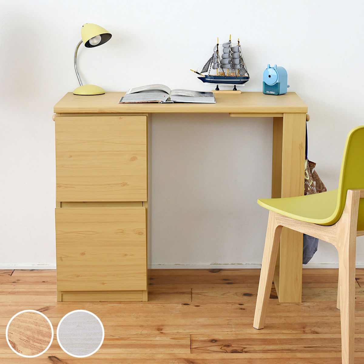 | 材質 | 本体:プリント紙化粧合板 天板:合成樹脂化粧合板(PVC) 引出し前板:合成樹脂化粧パーティクルボード(PVC) |