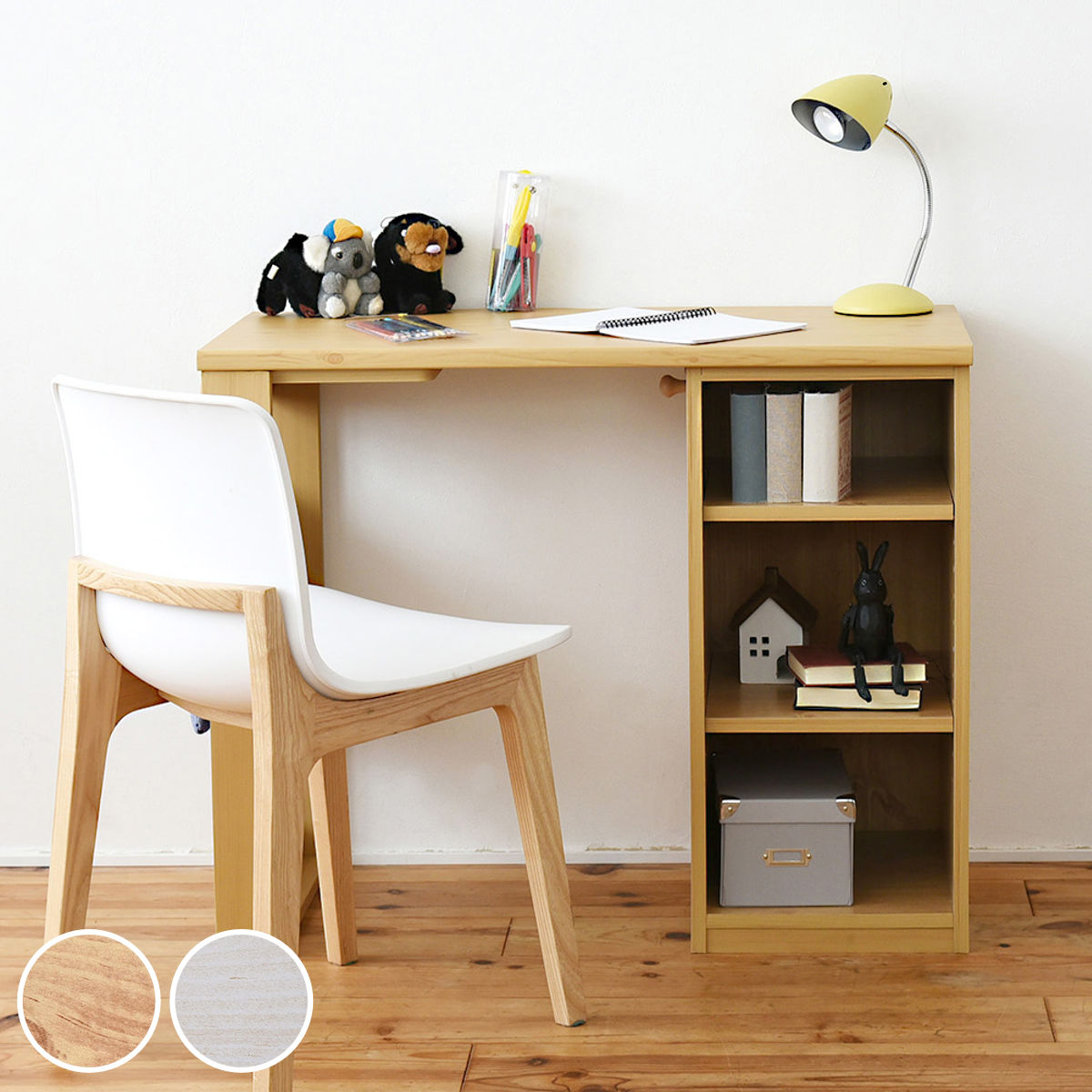 ![]() 引出し付き コンパクトデスク 幅90cm | ![]() ラック付き コンパクトデスク 幅90cm | ![]() ラック・チェスト付き ツインデスク 幅180cm |