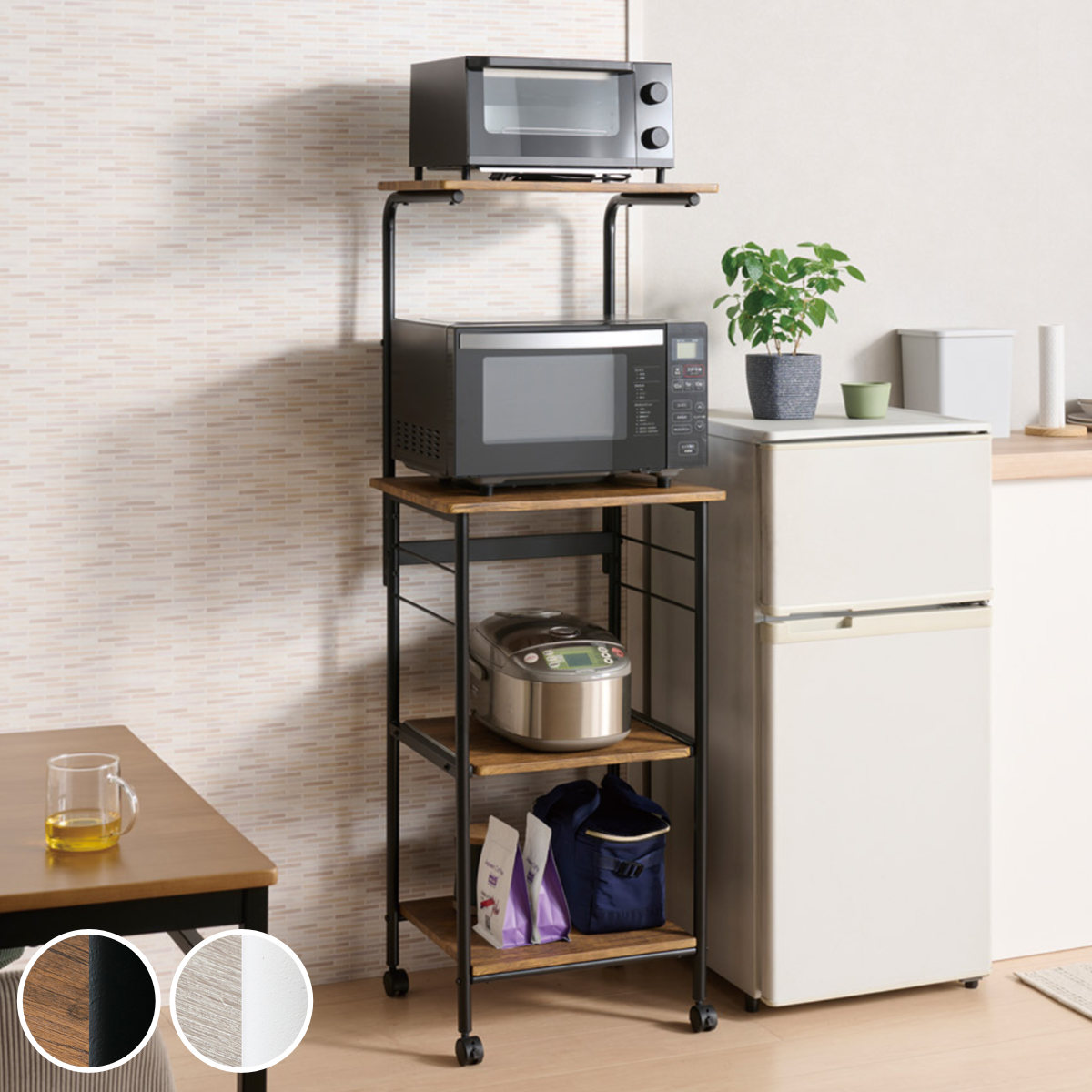 ![]() 広げて使える バタフライワゴン | ![]() スペースを活用 ゴミ箱上ラック | ![]() ひとまとめに収納 レンジワゴン |
