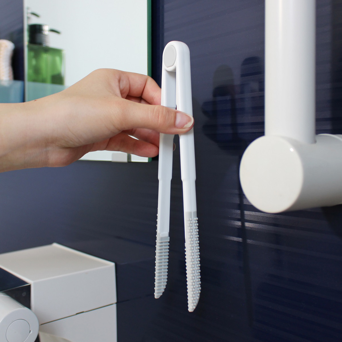 マグネットで浴室の壁にピタッと収納身近なところにサッとしまえて、いつでも使える排水口用トング&ブラシです。浴室の壁に磁石でピタッと収納でき、隠さなくてもいいスマートなデザインが魅力です。