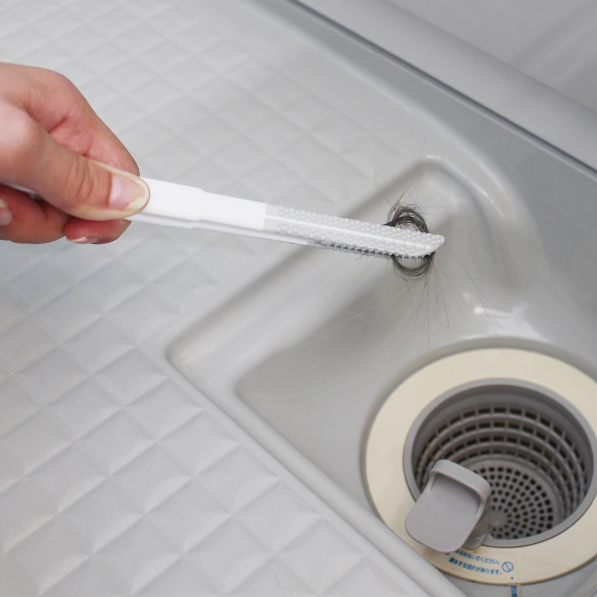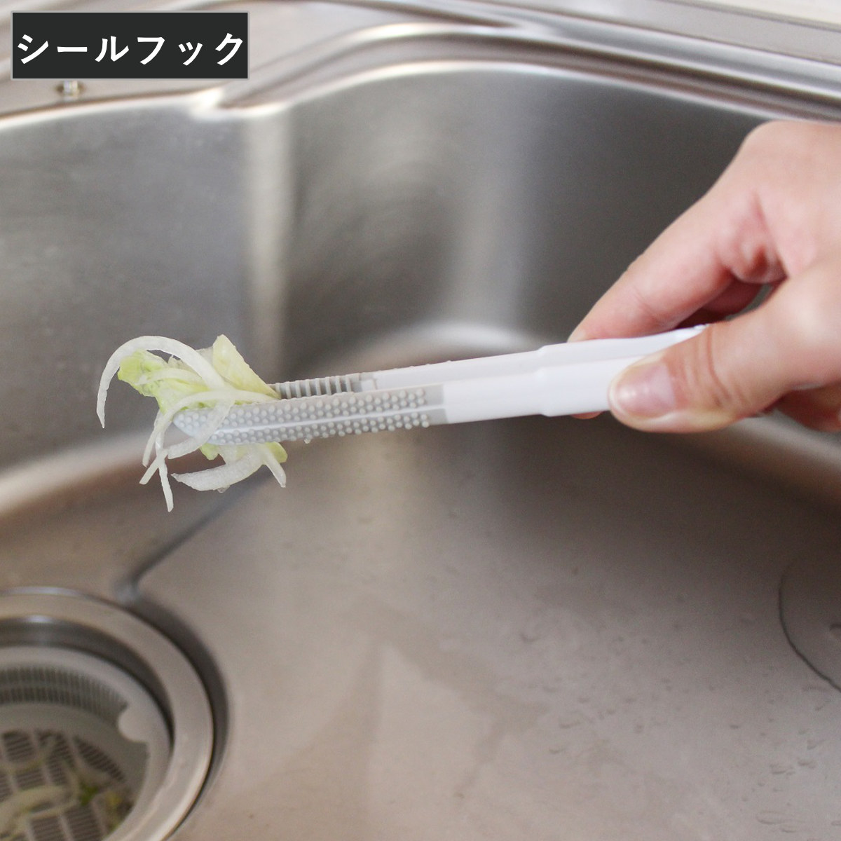 嫌な汚れに触らず処理できる触りたくない排水口等に溜まったゴミをつかんで捨てることができます。排水口・ゴミ受けカゴの汚れ(ぬめり等)落とし、髪の毛取りに最適です。