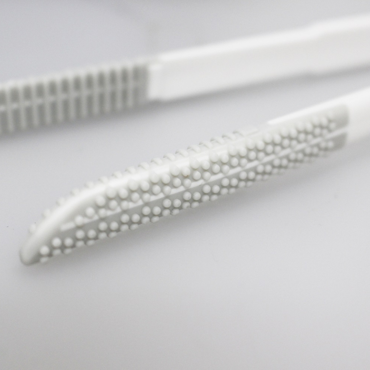 汚れをかき取るゴム製ブラシトング外側は細かいブラシ形状です。ブラシ自体についた汚れも落としやすく衛生的に使えます。