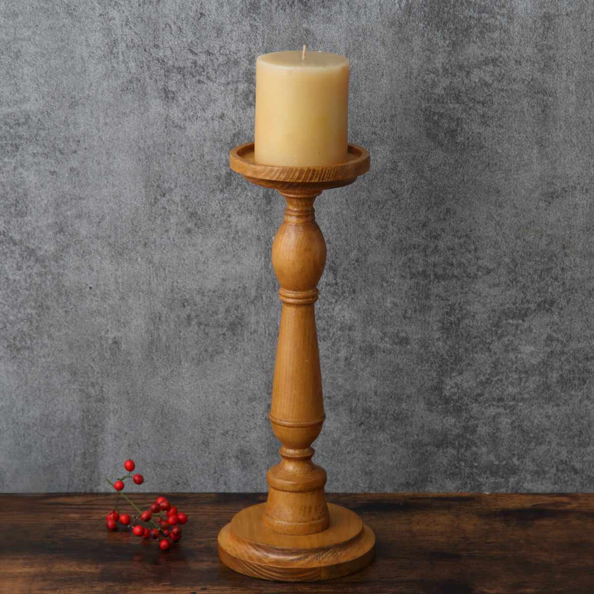 天然のパイン材を使用したアンティーク風のキャンドルスタンドです。アンティークな雰囲気を再現するため、全て手作業で仕上げられているので、ハンドメイドの風合いと木の温もりをお楽しみいただけます。