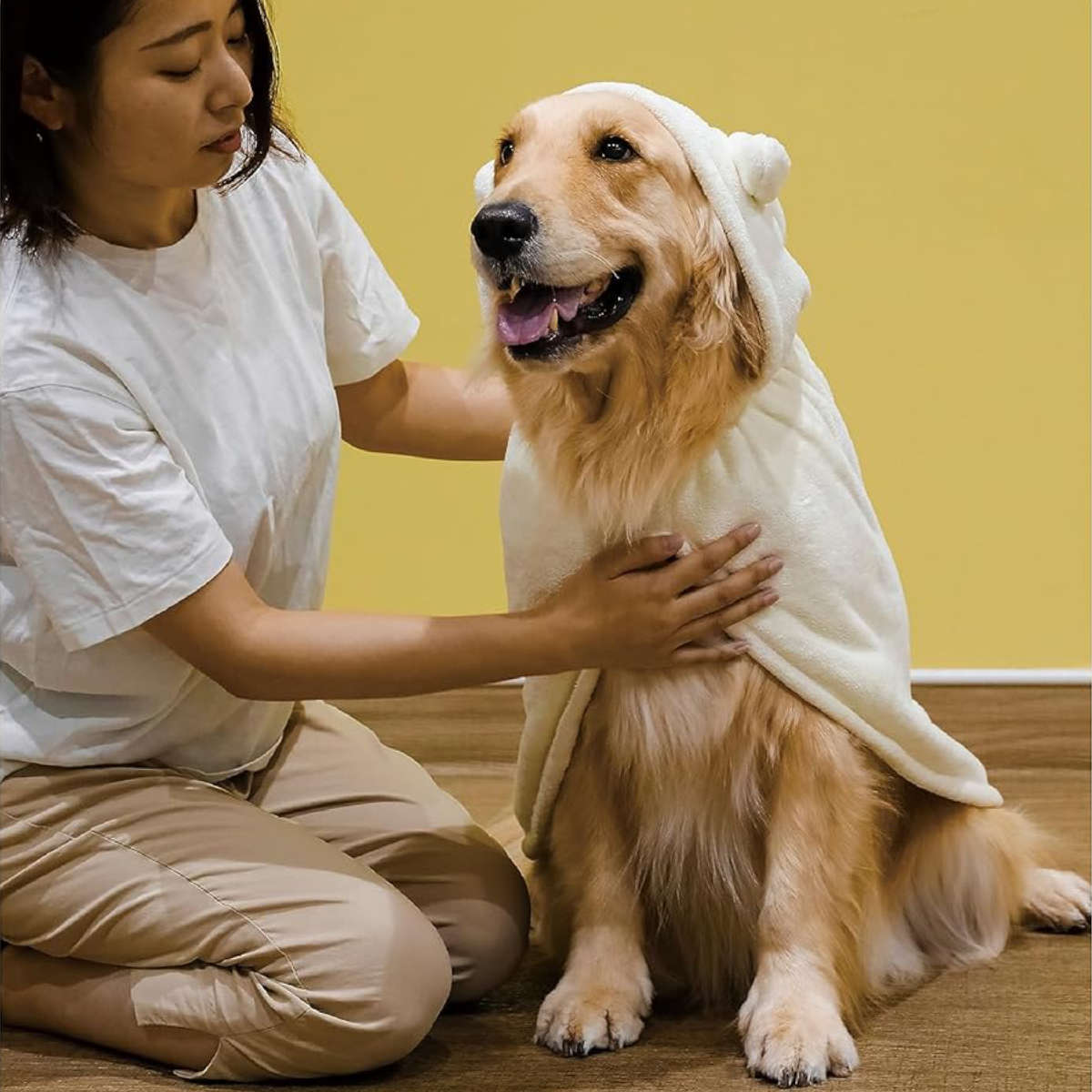タオル ペット カラリペット アニマルローブ L 犬 ( ローブ 耳付き 大型犬用 マイクロファイバー 吸水 速乾 シャンプー お散歩 ペット用 バスローブ )