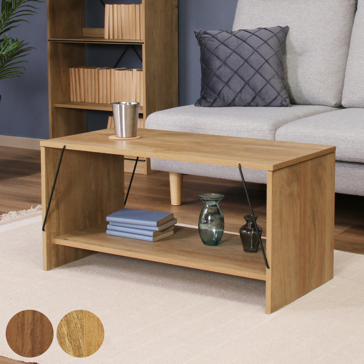 EZBO センターテーブル 幅80cm リビングテーブル ワイヤーテーブル 工具不要 ( 組立簡単 ローテーブル テーブル オープン収納 コンパクト 省スペース )