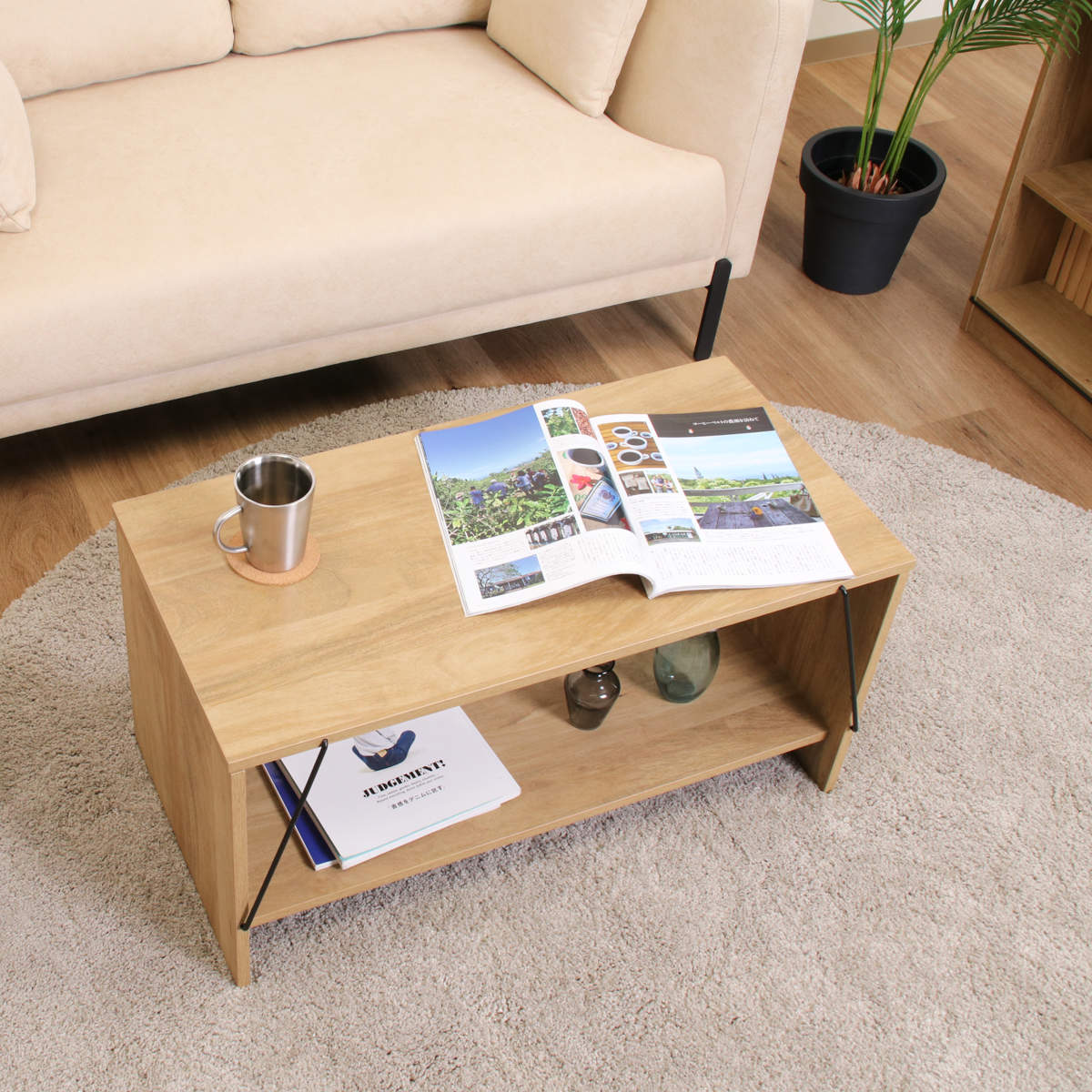 ワンルームのセンターテーブルとしてぴったりなコンパクト設計です。低めの高さなので圧迫感もなくお使いいただけます。