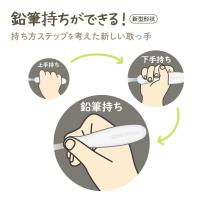 正しい持ち方をサポート太くてくぼみのあるひょうたんのような取っ手は、握りやすく手にフィットする形状で持ち方練習にぴったりです。上手持ち、下手持ち、鉛筆持ちなど、成長に合わせた握り方をサポートします。自分でうまく握れるからこそ「じぶんでやりたい!」という気持ちを後押しします。