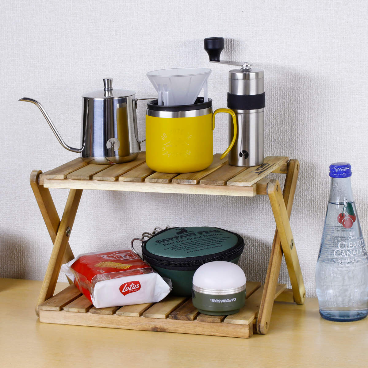 天然木の多目的2段ラックコンパクトサイズで置く場所を選ばない、天然木の多目的2段ラックです。工具を使わないで簡単に組み立てが可能です。19.5cmと21cmの2段階に高さを変えることができます。