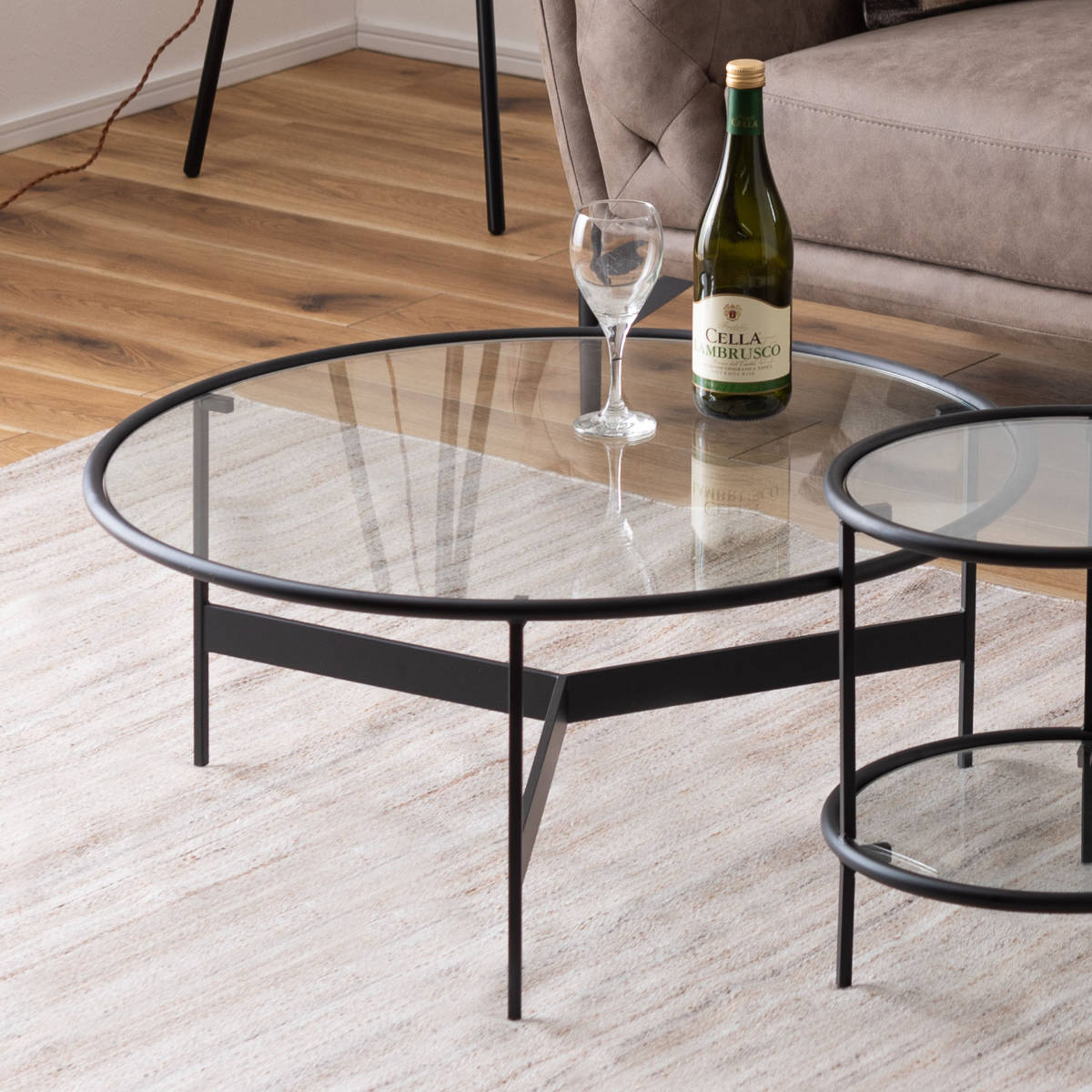 センターテーブル 円型 直径75cm ラウンドガラステーブル ( ガラス 天板 スチール リビングテーブル ローテーブル テーブル )