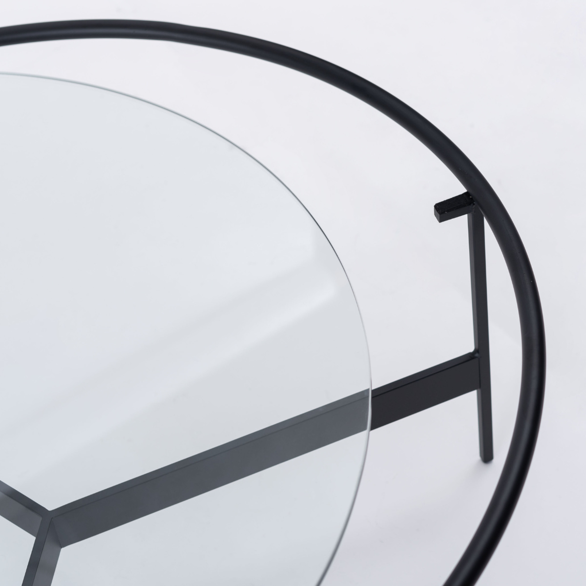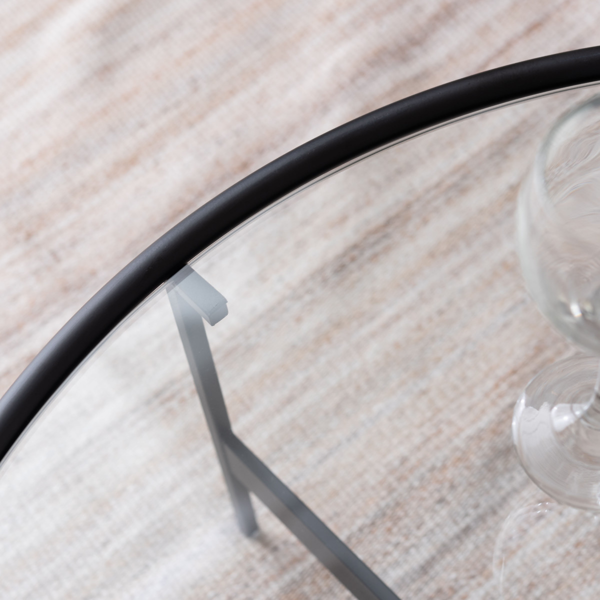 マットなブラックアイアンの滑らかな曲線とハードなガラスを組み合わせたスタイリッシュなガラステーブルです。リビングテーブルやサイドテーブルとしてなど、シンプルだからこそ様々なシーンに上品に溶け込みます。