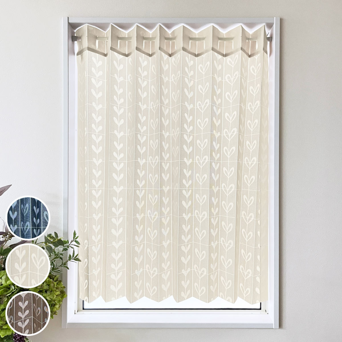 リーフ柄のアコーディオンカーテン 150×100cmナチュラルなリーフ柄がデザインされたアコーディオンカーテンです。お部屋に自然の風合いを加えながら、視線をさりげなく遮る役割も果たします。長さ100cmのため、小窓用カーテンとしてはもちろん、のれんや軽い間仕切りとしてもご利用いただけます。