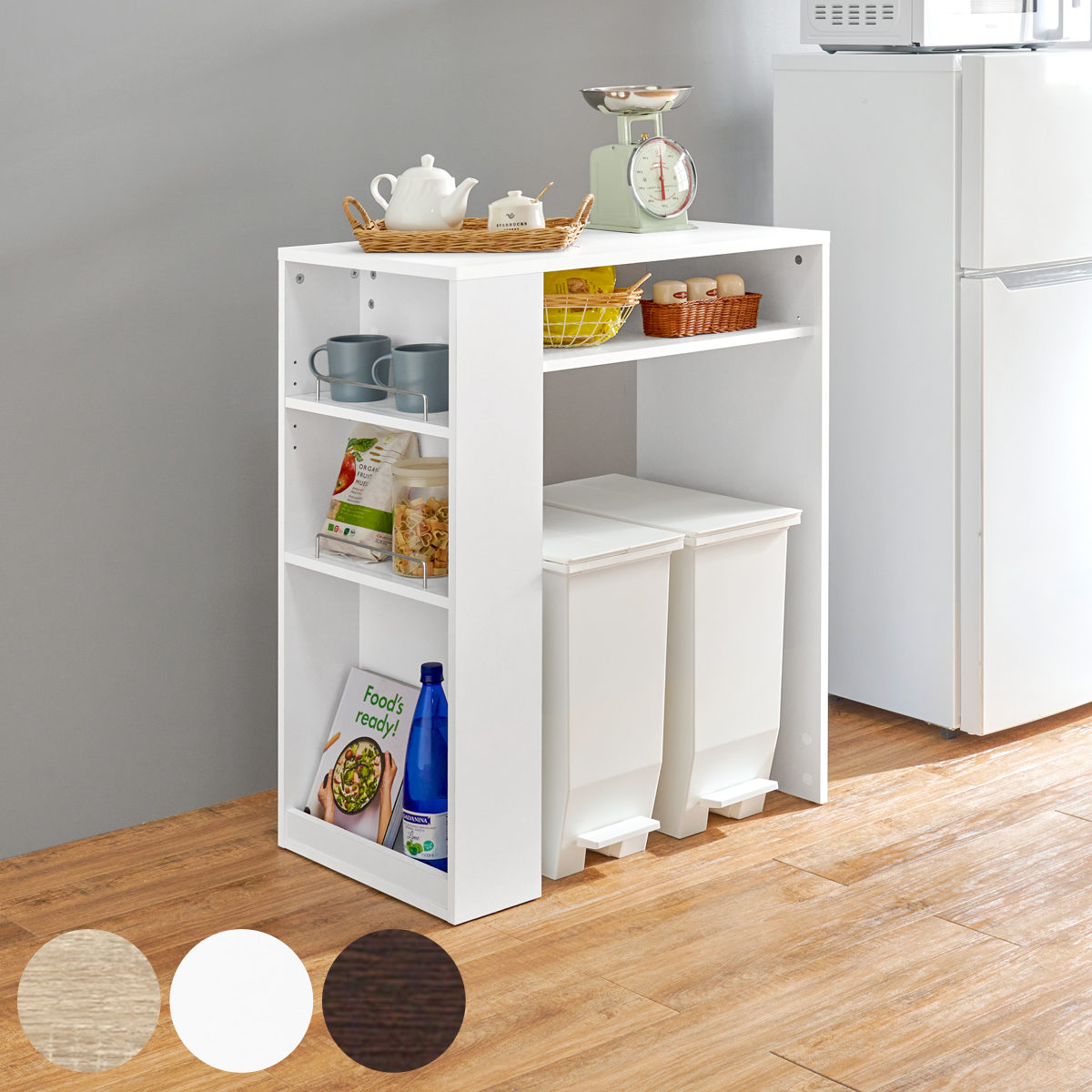 温かな風合いのナチュラル、明るく清潔感のあるキッチンにぴったりなホワイト、シックで重厚感のあるダークブラウンの3種類。インテリアをおしゃれ空間にできます。