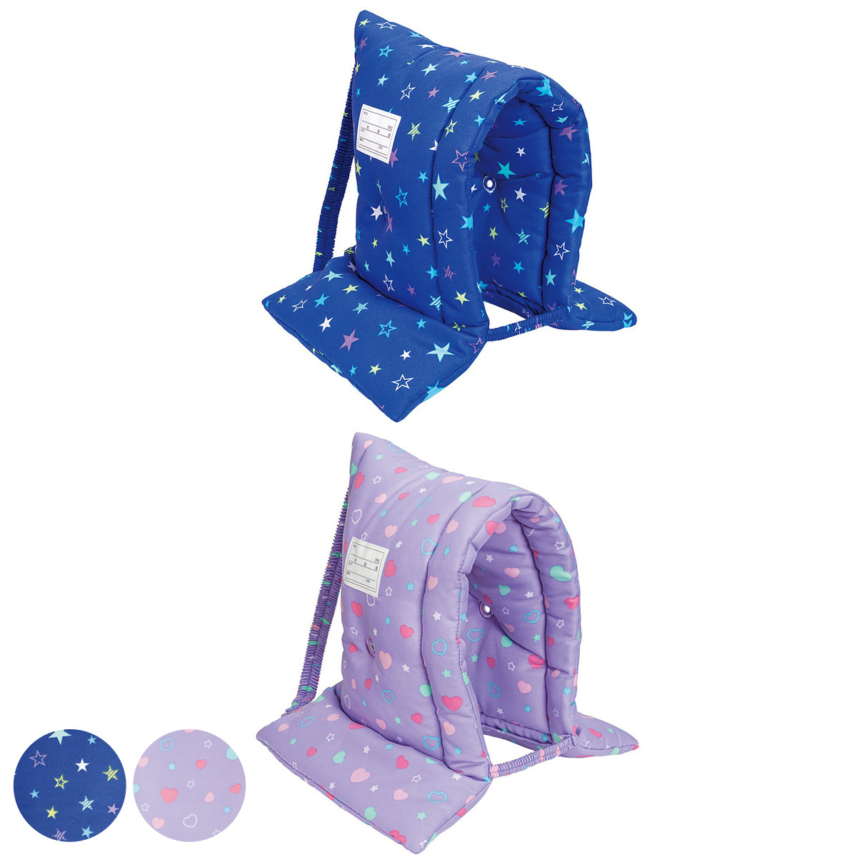 別売り収納袋で背もたれとしても使える別売りの収納袋に入れると、防災頭巾のカバーとしてはもちろん、背もたれやクッションとしてお使いいただけます。学校などの限られた収納場所しかない場合に便利なアイテムです。