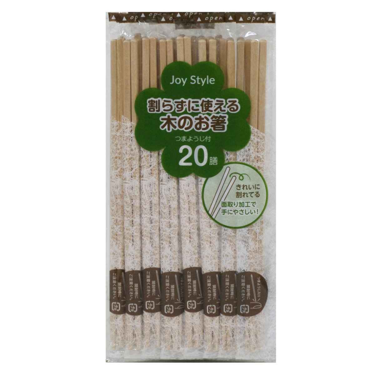割らずに使える木のお箸一膳ずつ個装で衛生的なお箸です。割らずにすぐに使えて大変便利です。ご家庭での普段使いやアウトドアなど、様々なシーンでお使いいただけます。20膳入りのため、大勢の集まりなどにも最適です。