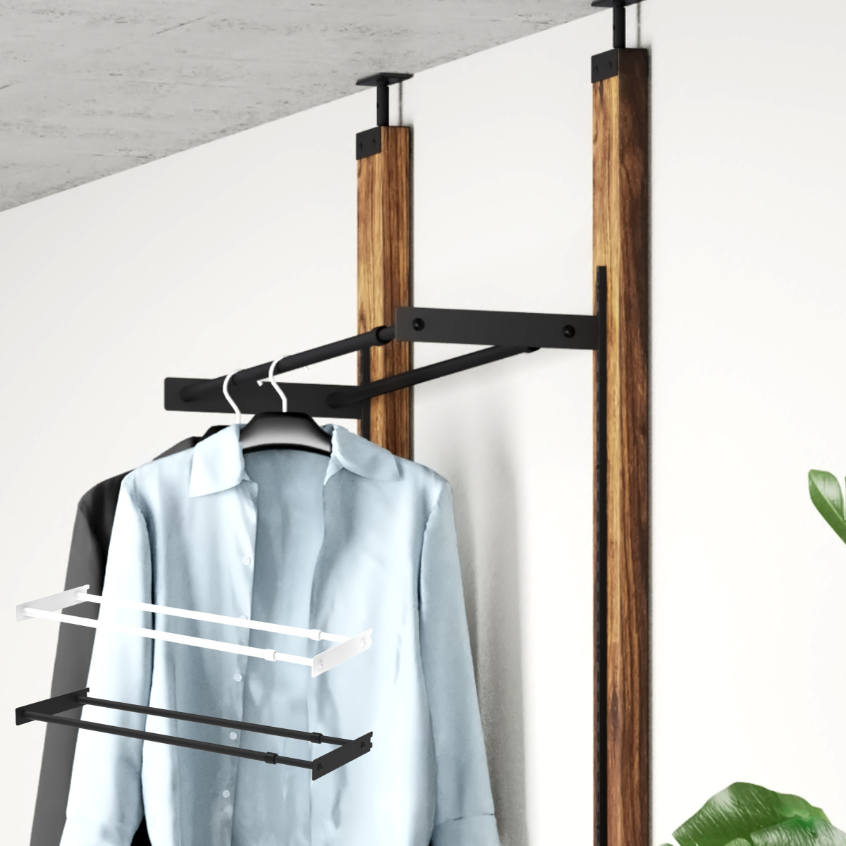 伸縮式でデッドスペースにピッタリ設置無段階で幅の調整が可能な伸縮式です。中途半端な幅でもピッタリ設置でき、デッドスペースを有効活用できます。