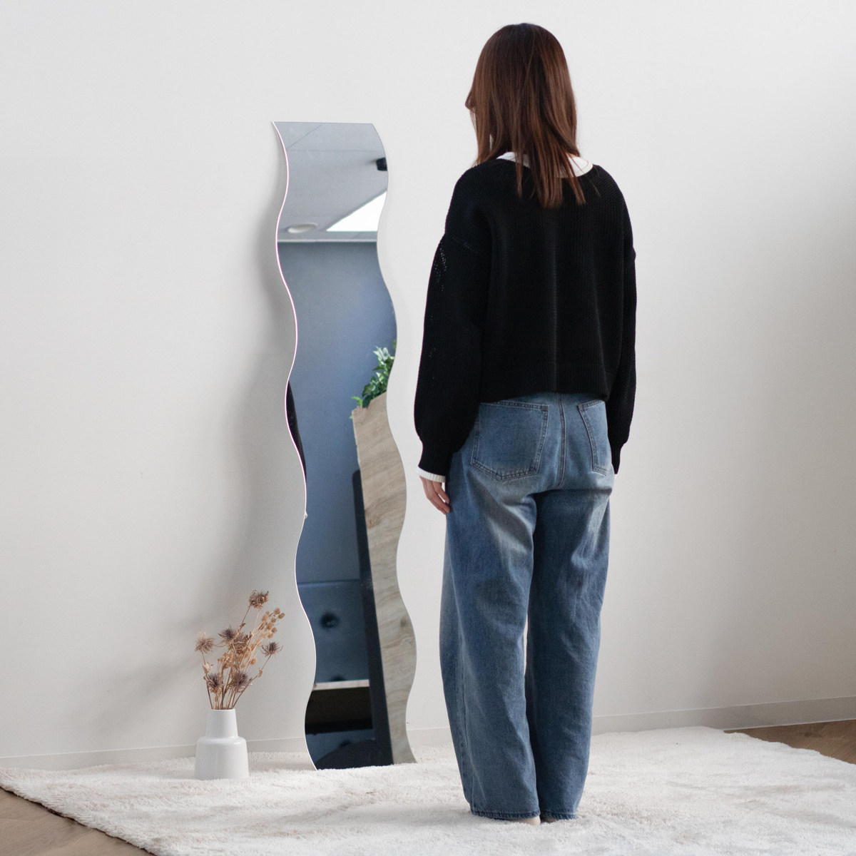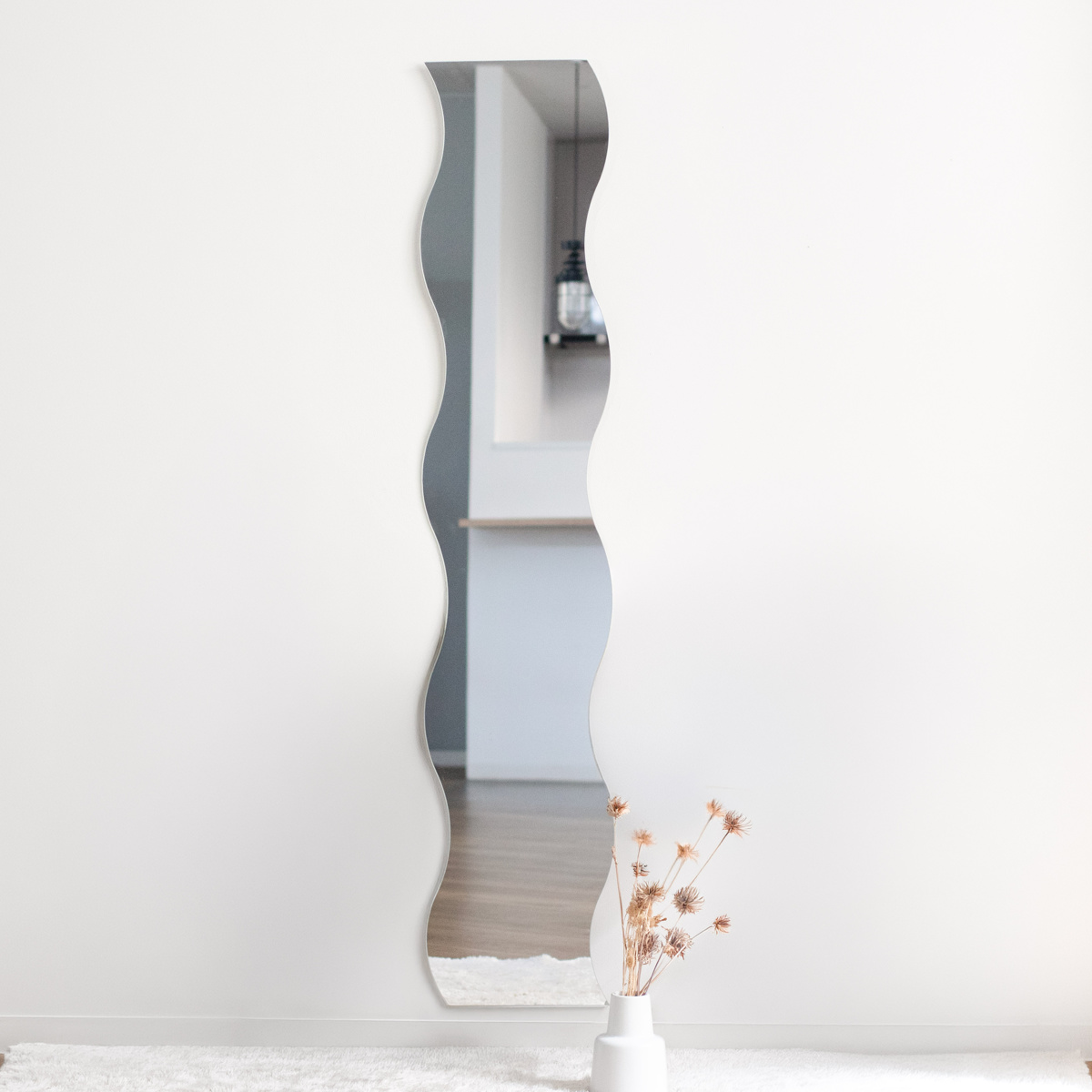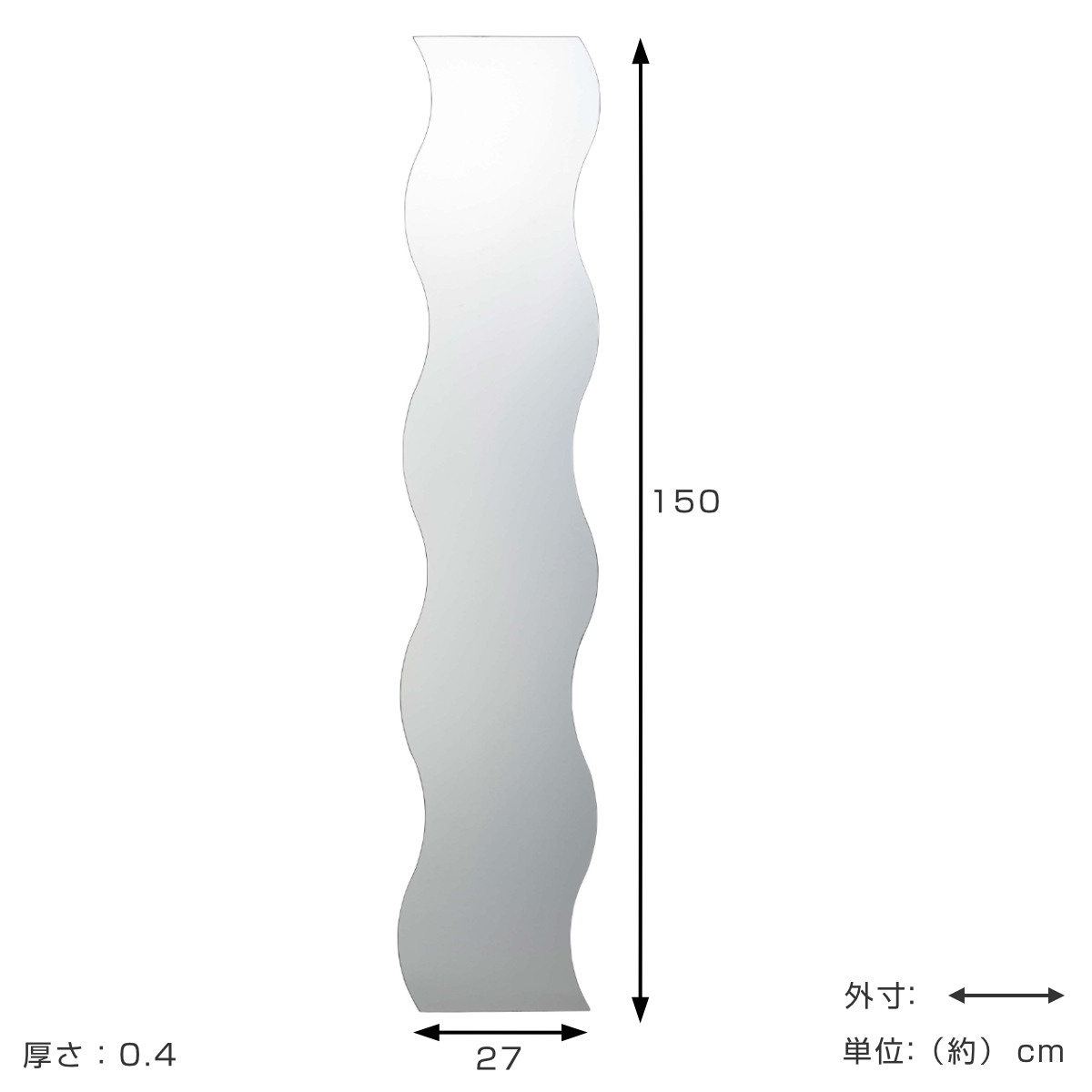 ウォールミラー 高さ150cm 波型 飛散防止 ウェーブミラー VAGUE おしゃれ ( 壁掛け ミラー 波型 ウェーブ型 フレームなし 飛散防止 鏡 全身 姿見 )