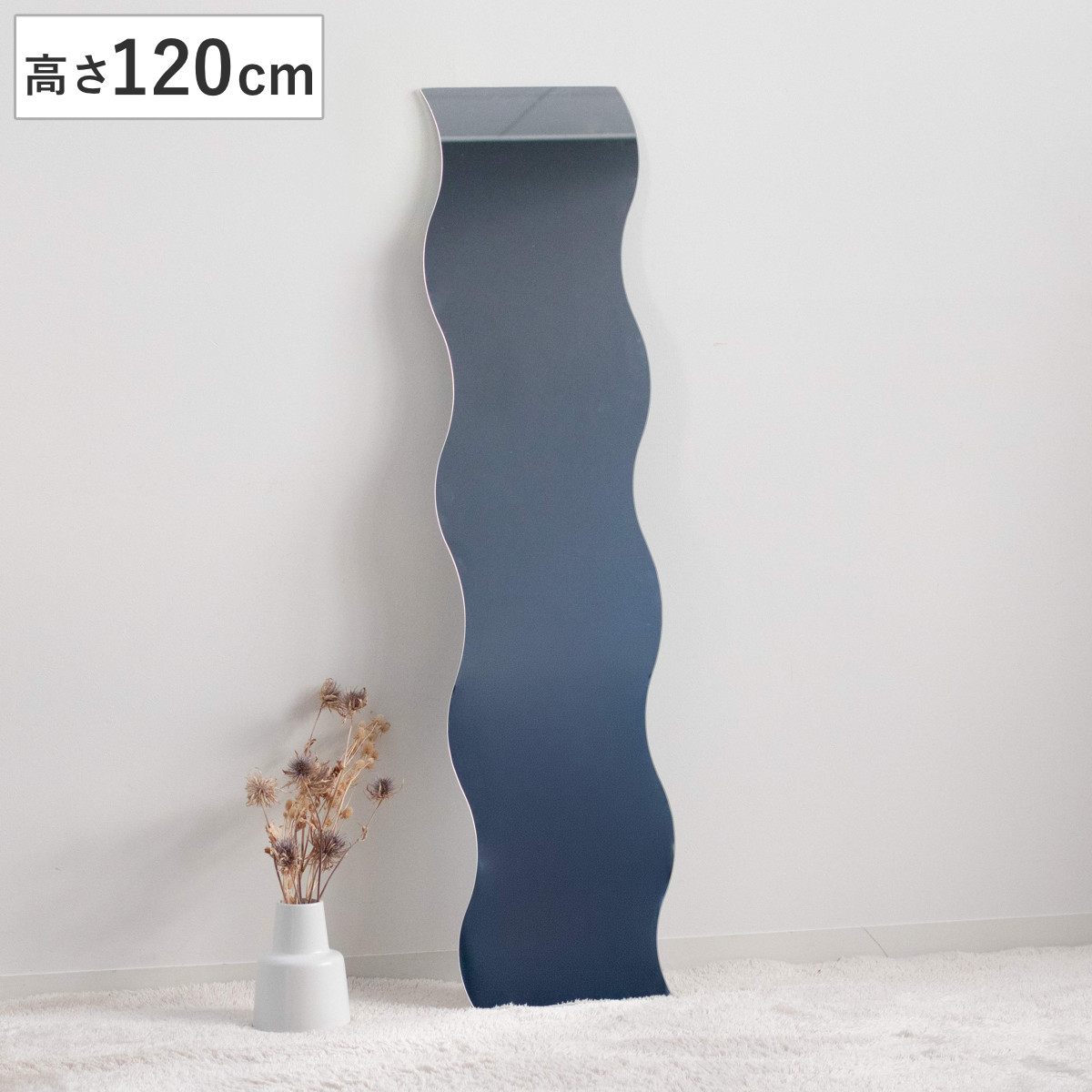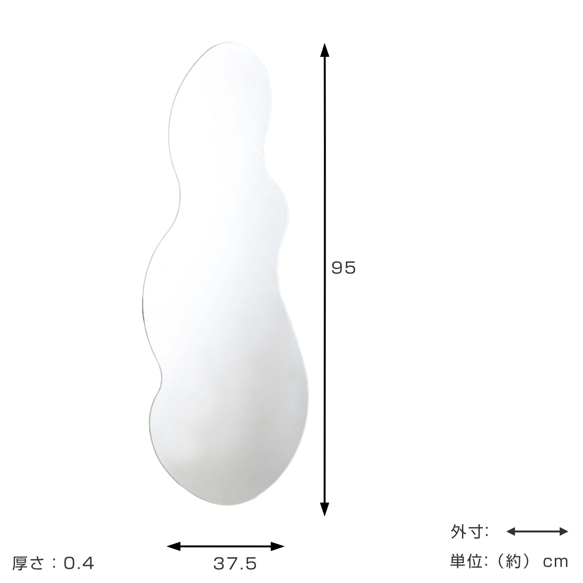 ウォールミラー 幅37.5×高さ95cm 波打ちデザイン ( 壁掛け ミラー 波型 ウェーブ型 フレームなし 飛散防止 鏡 )