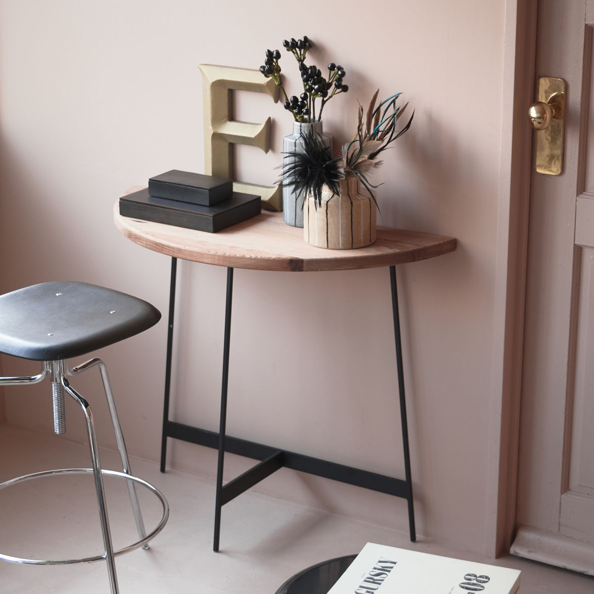 コンソールテーブル 半円型 高さ72cm 古材 ( 天然木 パイン材 ビンテージ調 アイアン 異素材 壁付け 壁寄せ テーブル 省スペース )