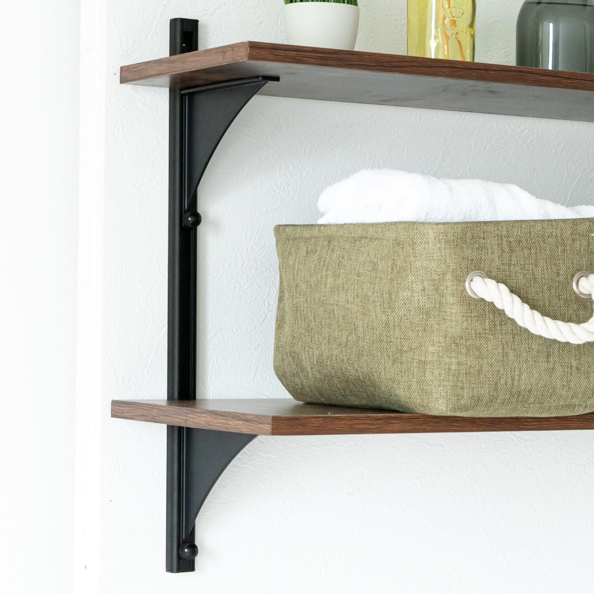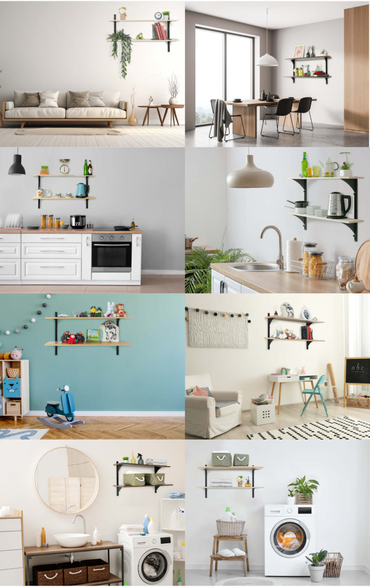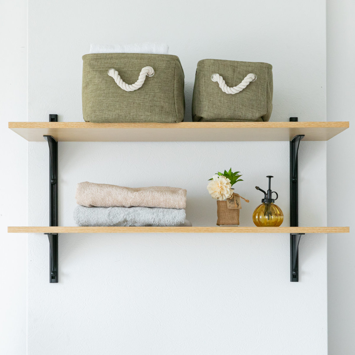 石膏ボードの壁に手軽に取り付けられる便利なシェルフです。お好みの棚板を用意して組み合わせることで、自分好みの収納スペースを作れます。お気に入りの雑貨や小物を飾り、おしゃれな空間を演出できます。