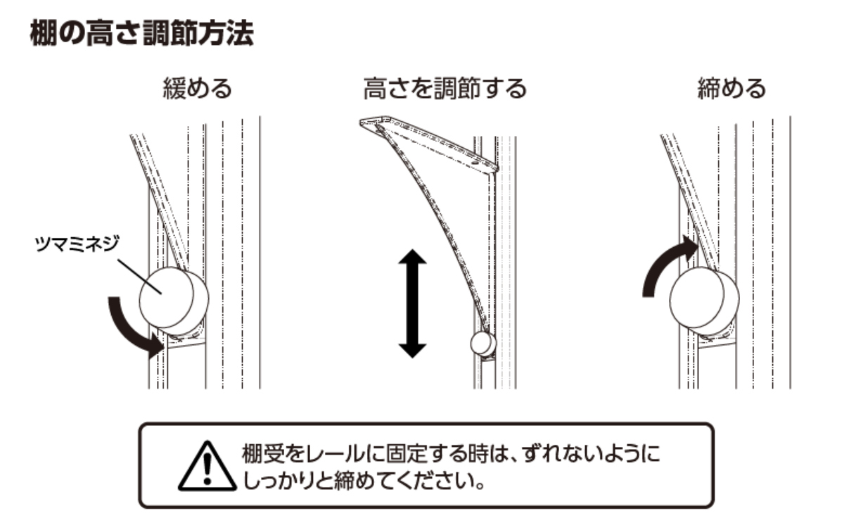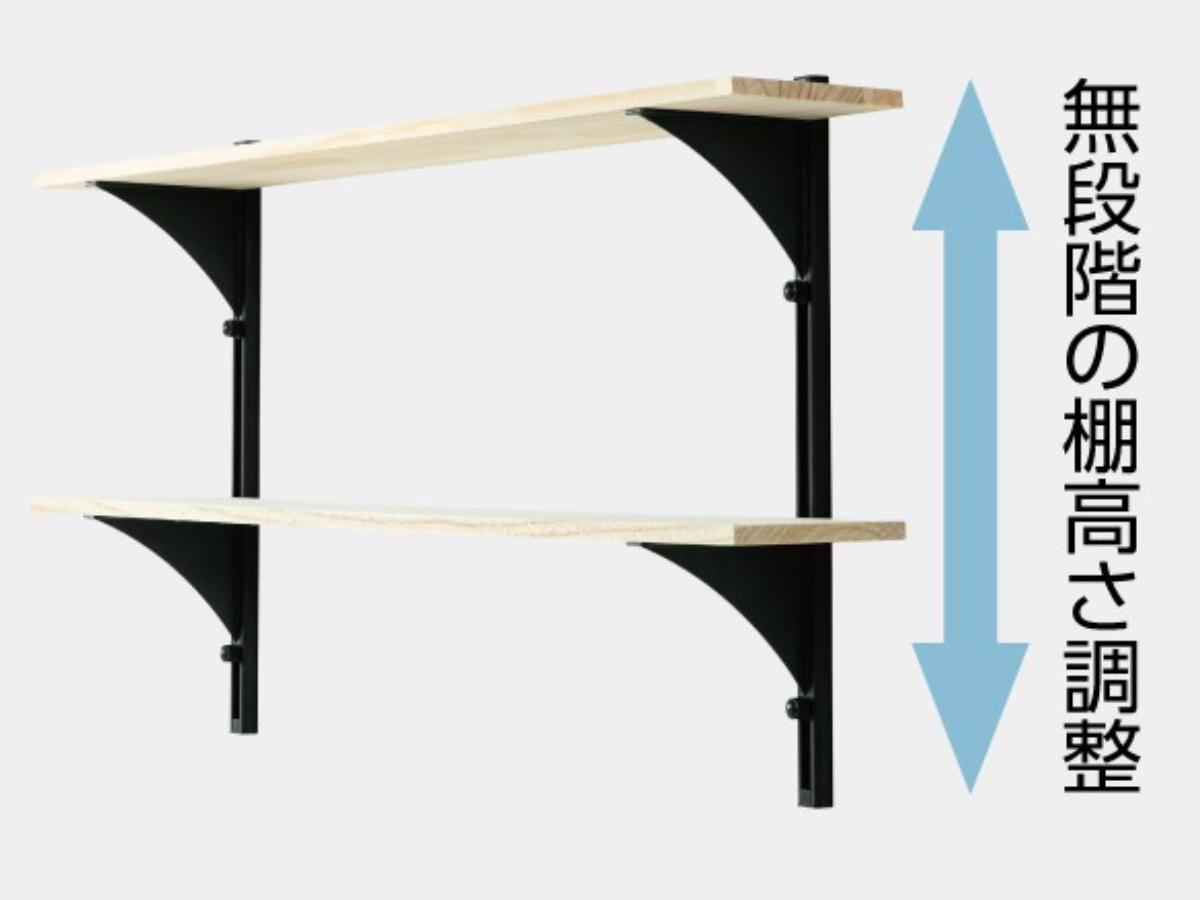 棚の高さは2段階で自由に調整でき、置く物に合わせて適切な高さに設置できます。