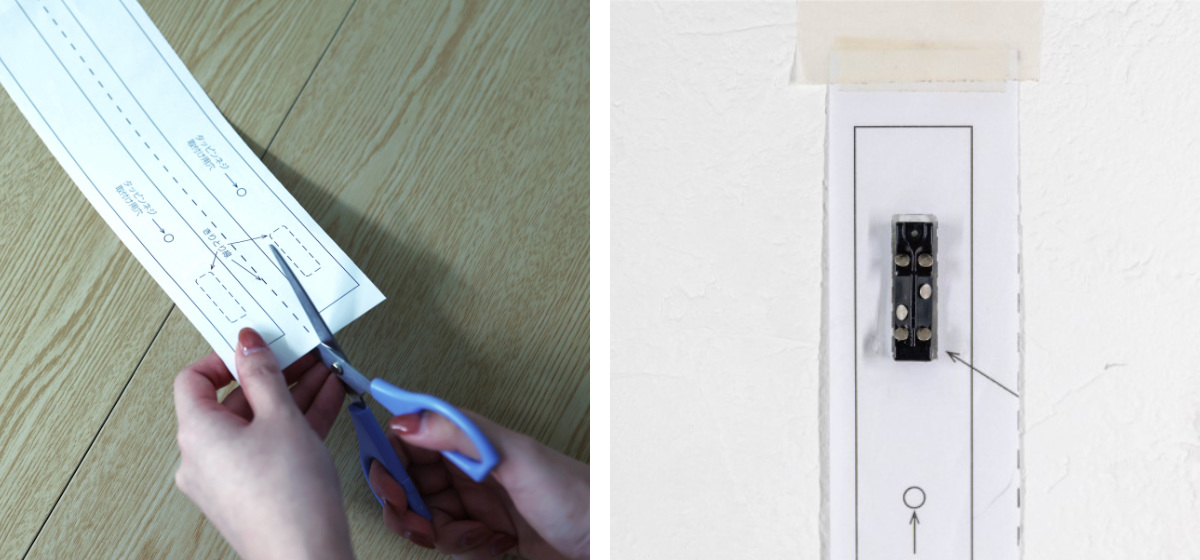 付属の取付ガイドを使用することで、まっすぐきれいに設置可能です。DIY初心者でも簡単に取り付けられます。