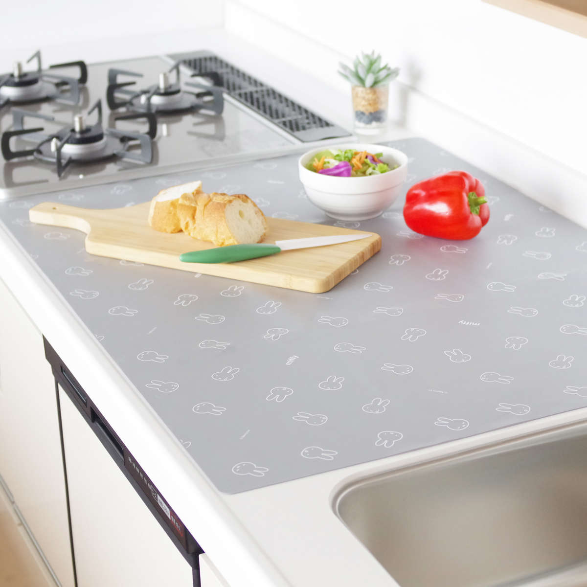防水仕様で嬉しい!可愛いミッフィーの調理台保護マット●調理台を守ってくれる可愛いミッフィーの保護マットです。